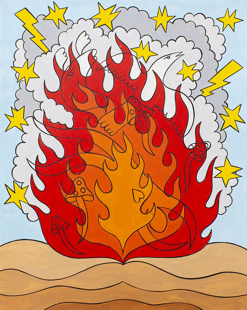 A la hora de elegir a los once artistas que participan en la muestra, Sarabia y Peña Brito tenían un único requisito: “Queríamos que todos ellos trataran el fuego con cierto misticismo y como parte de un relato más amplio. Sus obras debían conducir a una sensación de profundidad”, comentan. Así reunieron a un equipo que junta a autores de gran recorrido (como el propio Sarabia o Christopher Myers) con artistas emergentes (Julián Madero Islas, María Paniagua).