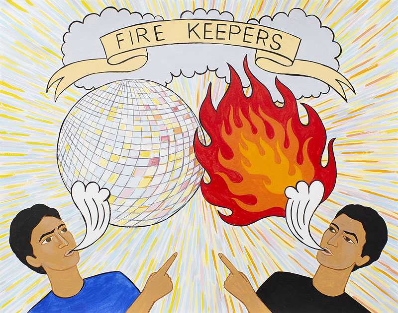 Los once artistas que participan en “The Fire Keepers” son Pablo Aldrete, Felipe Baeza, Marcel Dzama, Alejandro García Contreras, Giovanni Fabián Guerrero, Circe Irasema, Julián Madero Islas, Christopher Myers, Mariana Paniagua, Lucía Vidales y Eduardo Sarabia.