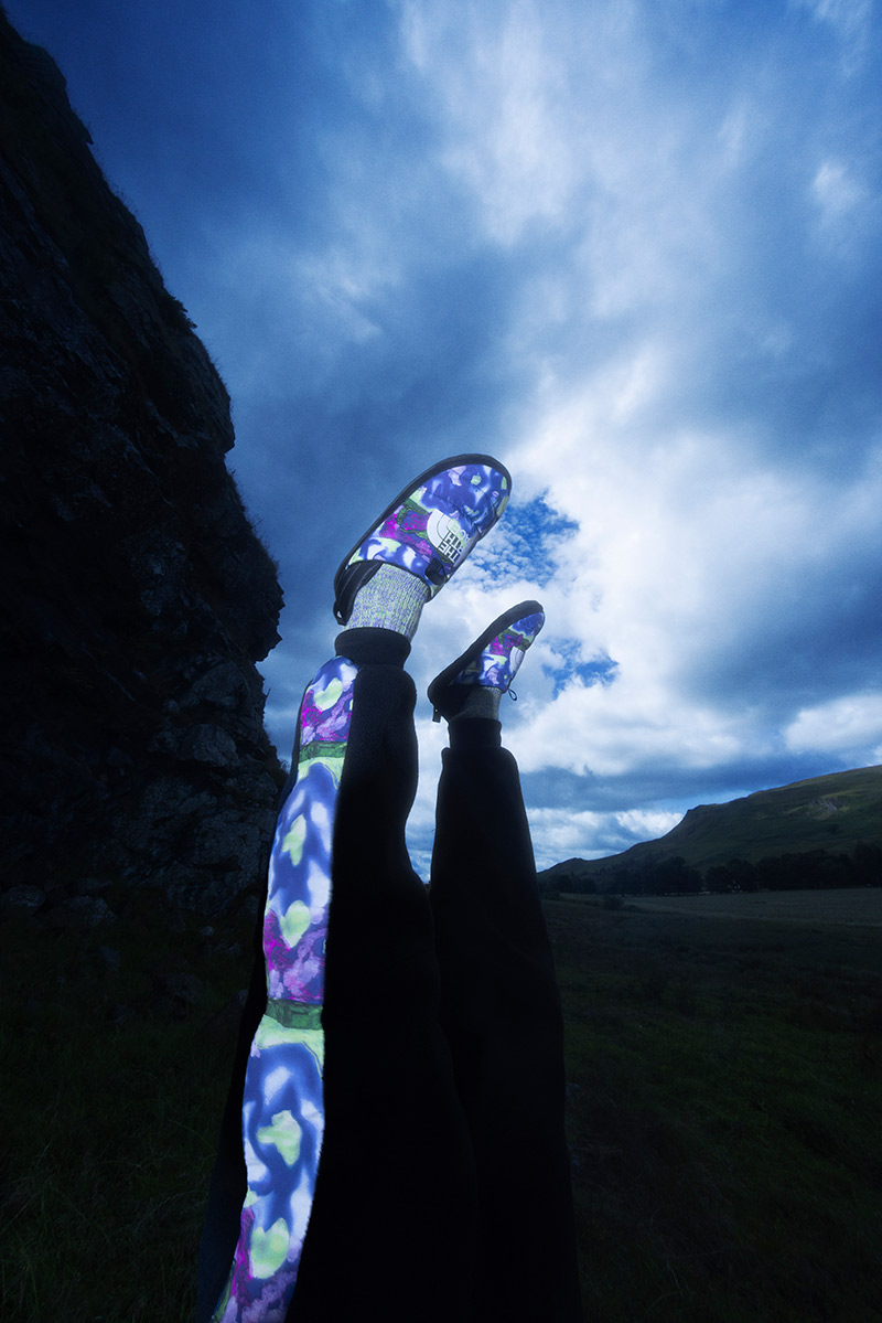 Para quienes no conozcan al artista, Alfie Kungu es conocido por sus obras abstractas y llenas de color regidas por un profundo amor por la naturaleza. Su trabajo podría describirse como una representación caleidoscópica de un paralelismo entre la vida de ciudad y la vida al aire libre. Es arte desenfadado y bastante feel good. Ahora, estos mismos principios se ven plasmados en una serie de abrigos para invierno, pantalones, guantes y todo lo que se nos puede ocurrir.