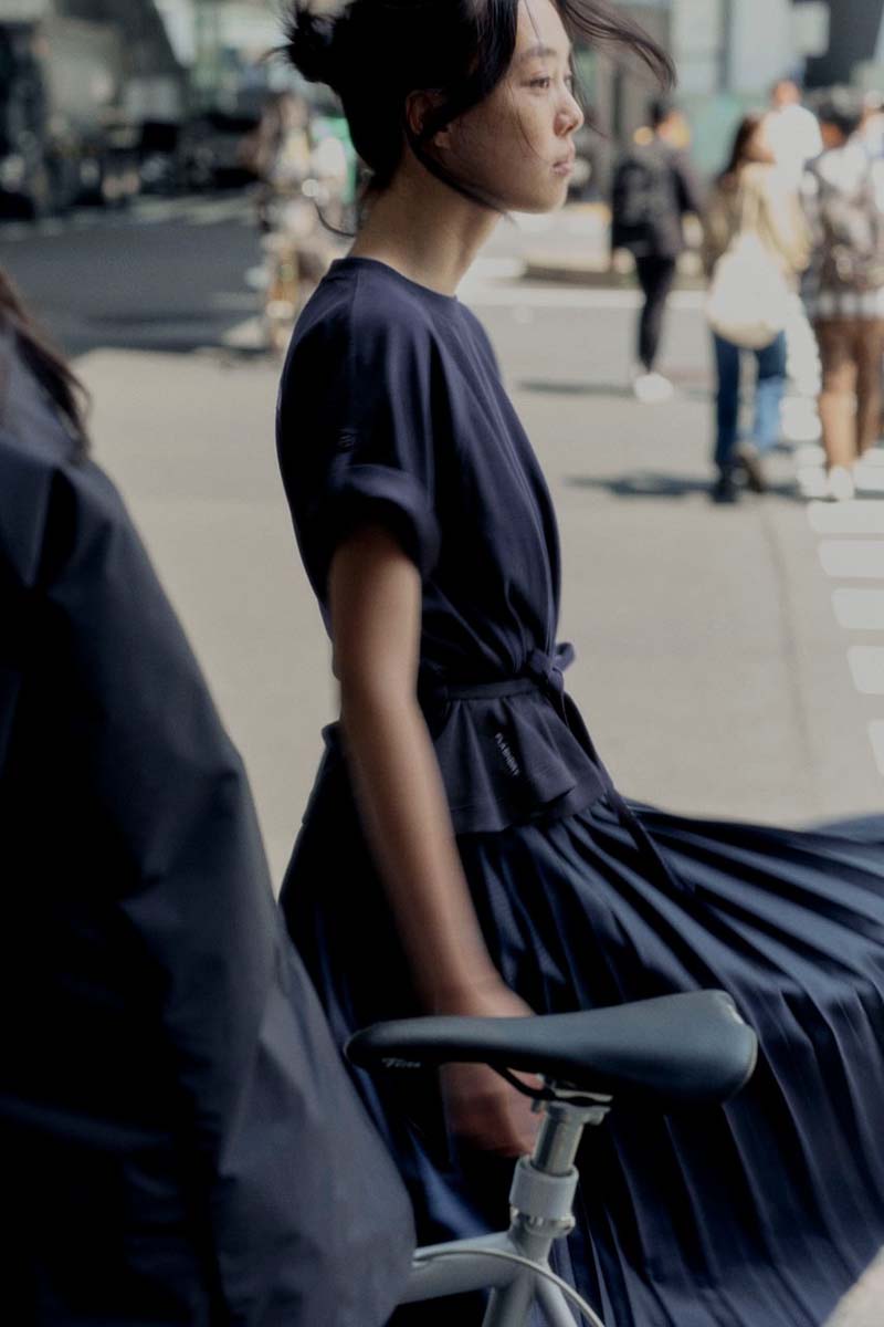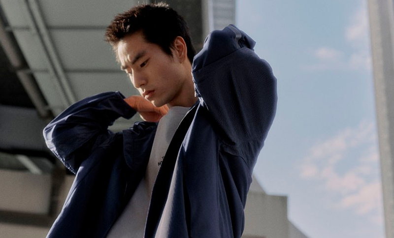 El conjunto estrella masculino de esta propuesta de tendencia gorp core es un set de chaqueta convertible y shorts a juego en azul. El cortavientos, de corte relajado, presenta mangas extraíbles que construyen un look de manga oversized bastante vanguardista y permite una mayor versatilidad de la prenda. Complementando esta colección, tenemos reinterpretaciones de una chaqueta de estilo universitario con matices utilitarios, faldas plisadas y un vestido midi pensados para la exploración más atrevida.
