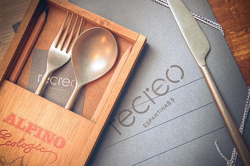 Imagen superior: cubiertos y carta de Taberna Recreo