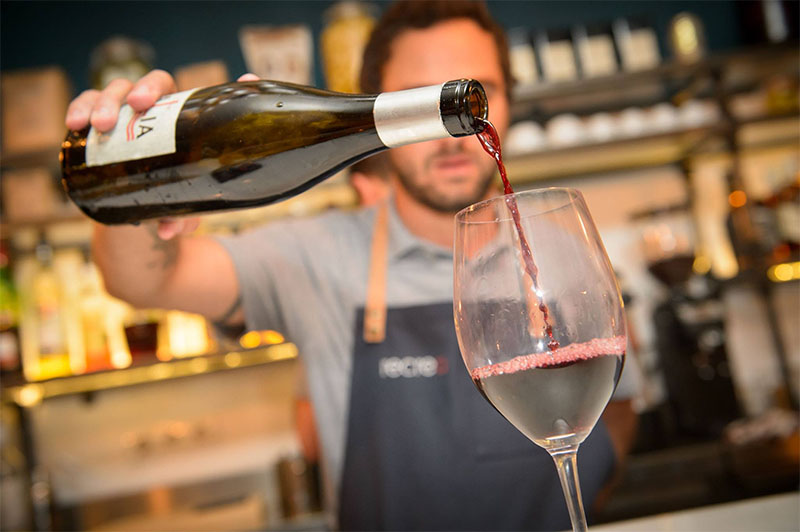 Imagen superior: el vino también tiene su presencia en la barra de Taberna Recreo