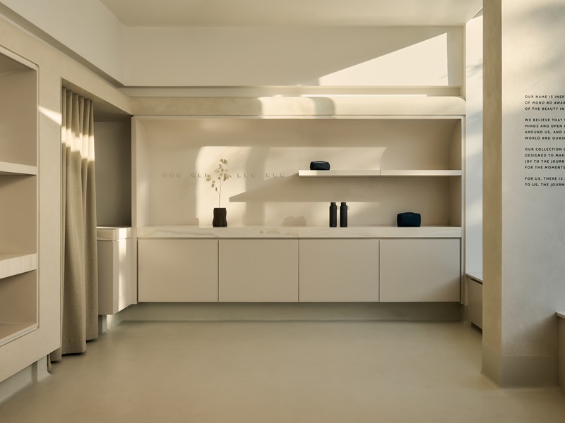 Ste Marie Studio, la práctica de diseño de interiores fundada en Canadá, apuesta por el color crudo para crear la esencia de esta nueva tienda, que desprende una sensación parecida a la de ‘estar en las nubes’ desde la fachada hasta el último rincón de los interiores. El diseño se inspira en la filosofía mindful travel sobre la que se asientan los valores de la marca. Esa alegría despertada al viajar, desconectados de nuestros dispositivos, por la que establecemos un fuerte vínculo con el lugar de destino. En armonía con el significado del nombre de Monos, derivado del concepto japonés ‘Mono no aware’, que fomenta la consciencia de la impermanencia y la sensibilidad hacia lo efímero.