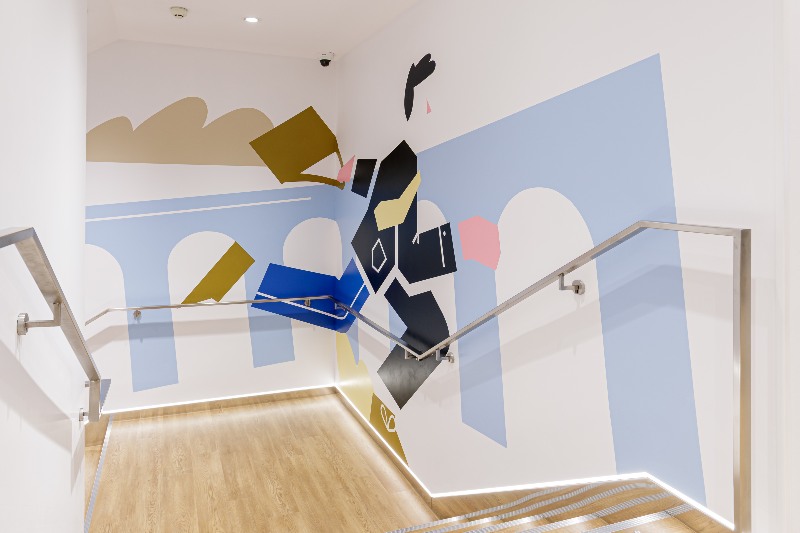 Como en sus otras tiendas, el arte no puede faltar. En la tienda de Castellana, han contado con la artista local Nuriatoll. Ella ha creado un mural a gran escala que acompaña a los visitantes mientras suben por la escalera. En las paredes de esta tienda, la artista ha reflejado elementos icónicos de Madrid y del barrio de Nuevos Ministerios, mediante escenas llenas de vida y color. Una experiencia artística que eleva y mejora el momento de compra, haciendo aún más especial la búsqueda de la prenda perfecta. Nosotros te recomendamos que no te pierdas esta zona, especialmente si no eres de Madrid.