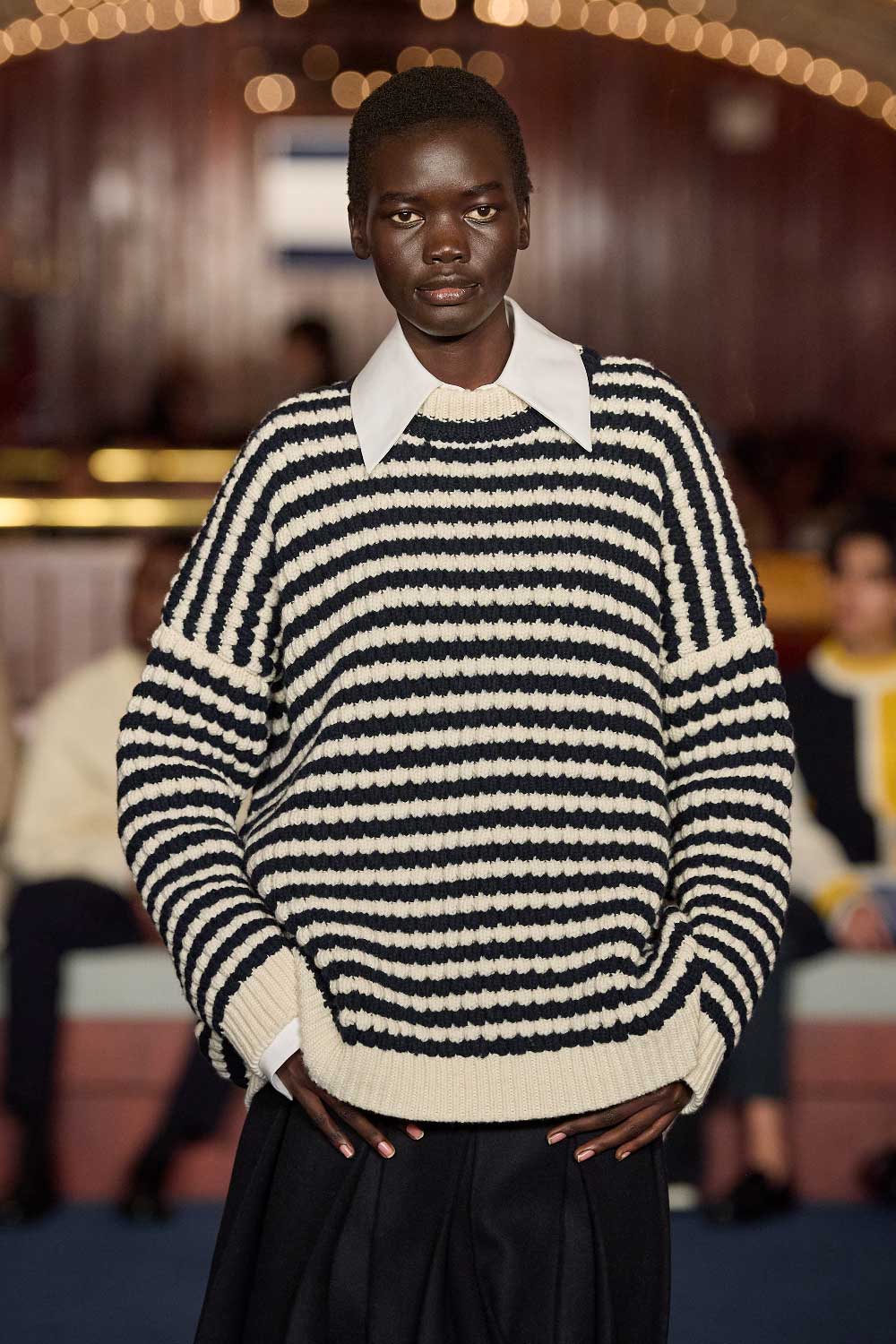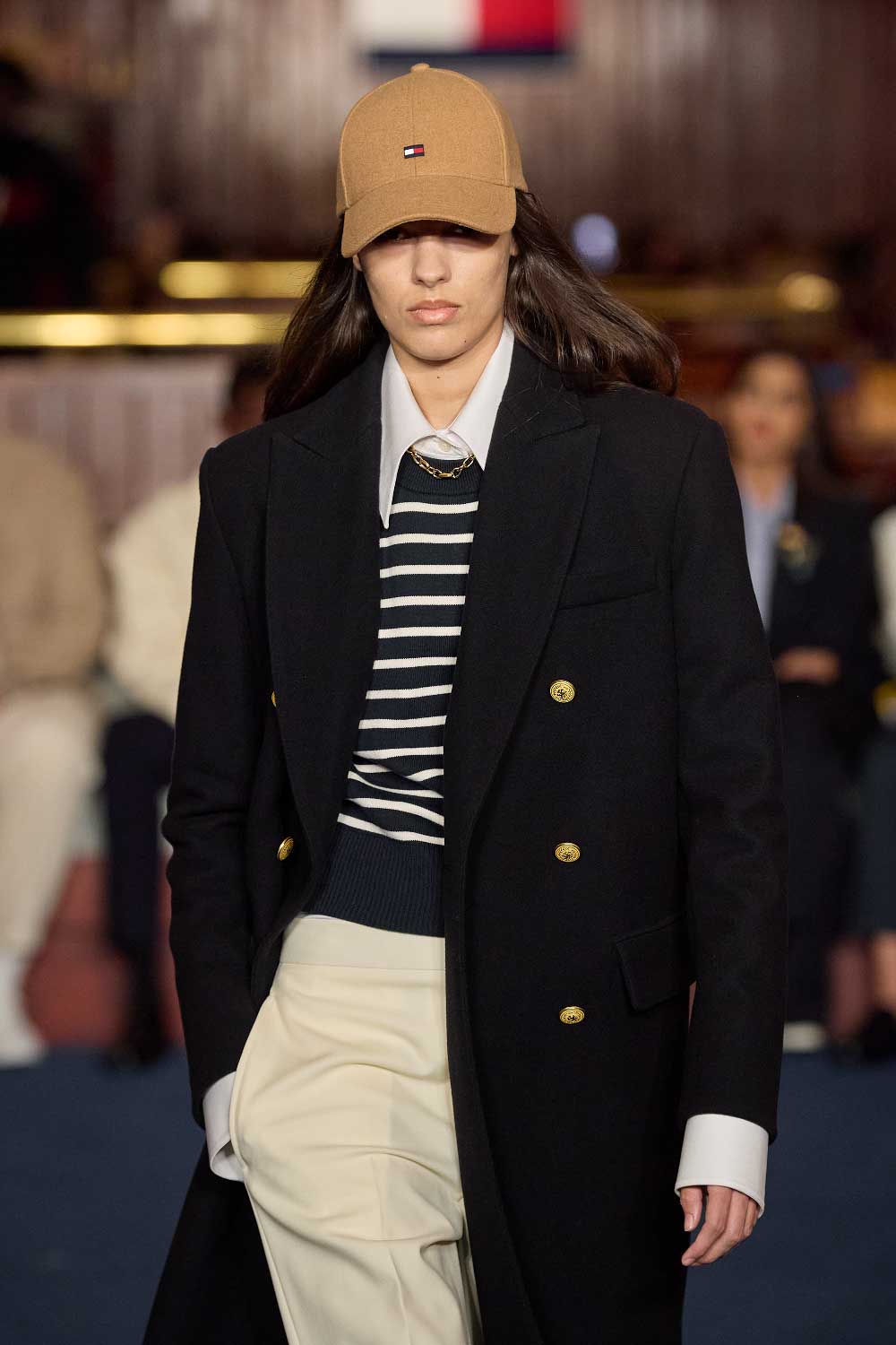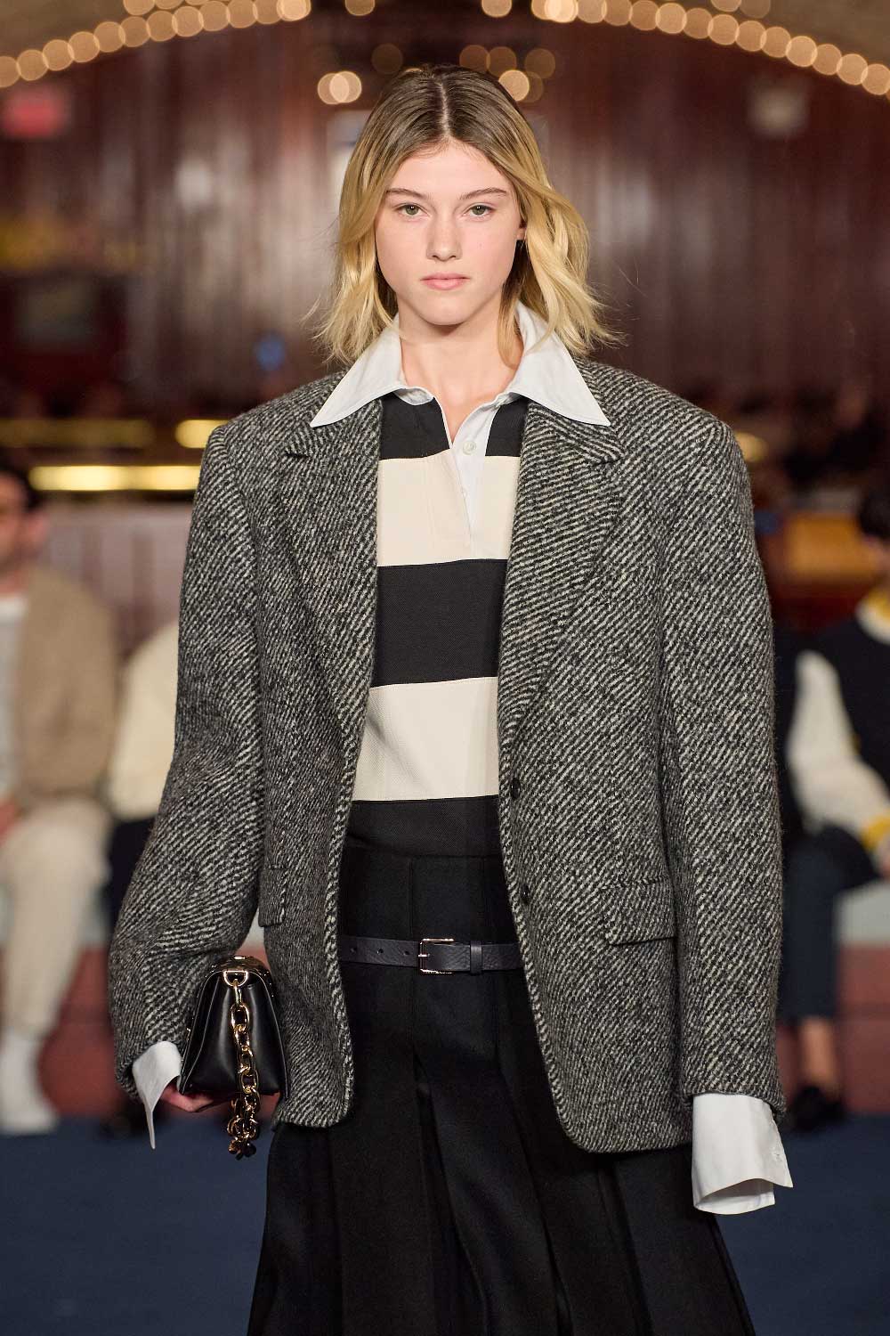 La colección Tommy Hilfiger FW24 combina lo formal con lo informal, lo retro con lo actual, lo preppy con lo callejero, lo atemporal con lo contemporáneo, lo tradicional con lo moderno… Una mezcla de prendas que individualmente pueden perdurar en el armario durante muchas temporadas. Por ejemplo, chaquetas beisboleras, camisetas de rugby, prendas de punto a rayas, mucha sastrería para hombres y mujeres, pantalones palazzo de pinzas combinados con zapatillas, camisas de cuello inglés extralargo… Y por lo general con la dominante de la silueta oversized y la tendencia masculino femenino para las mujeres. Una propuesta que ya puedes introducir en tu armario bajo la fórmula del “See Now, Buy Now”.