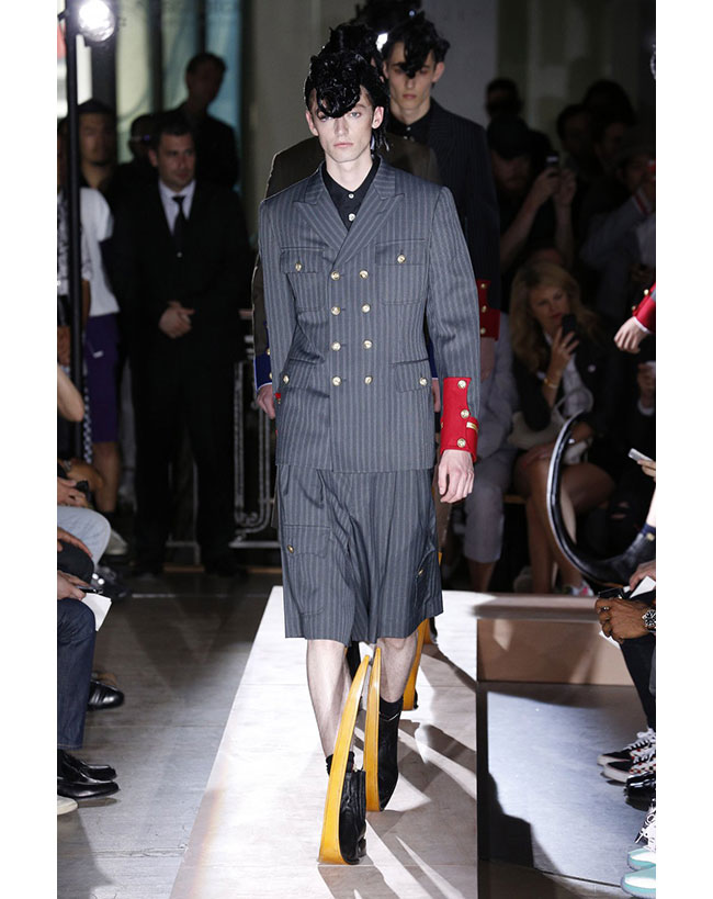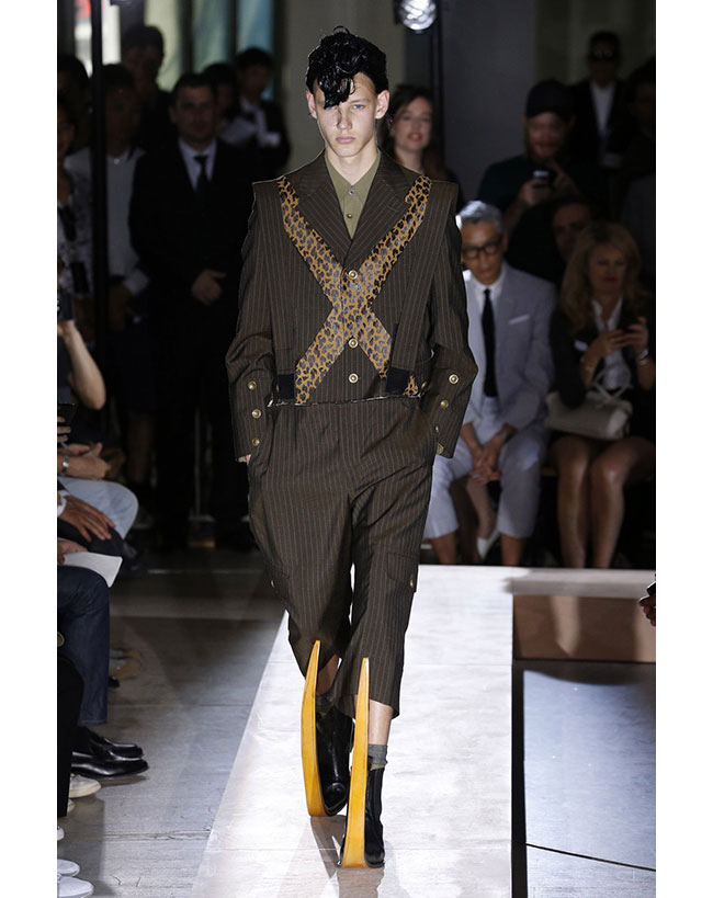 Eclécticas influencias las que confluyen en la nueva propuesta de Rei Kawakubo, en la que peinados estilo Teddy Boys años 50 algo desaliñados, se combinan con trajes de chaqueta militar con falda; las gabardinas y americanas con solapas terminadas en print animal, se encuentran atrapadas en redes de caza. Si a todo este añadimos su propia interpretación de las famosas botas picudas mexicanas, que surgieron de forma espontánea como un folklore del futuro en el año 2009, obtenemos un delirante pastiche para los sentidos tan propio de la creadora japonesa. Las botas fueron concebidas para bailar la música tribal guachera por los hombres de Matehuala y la moda no tardó demasiado en extenderse a países con cultura country de los Estados Unidos como Texas.