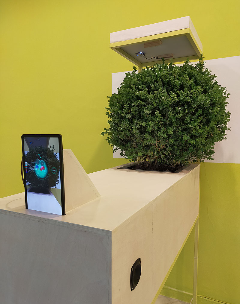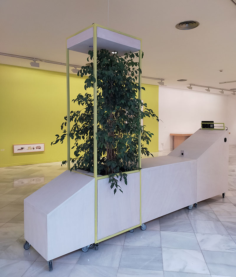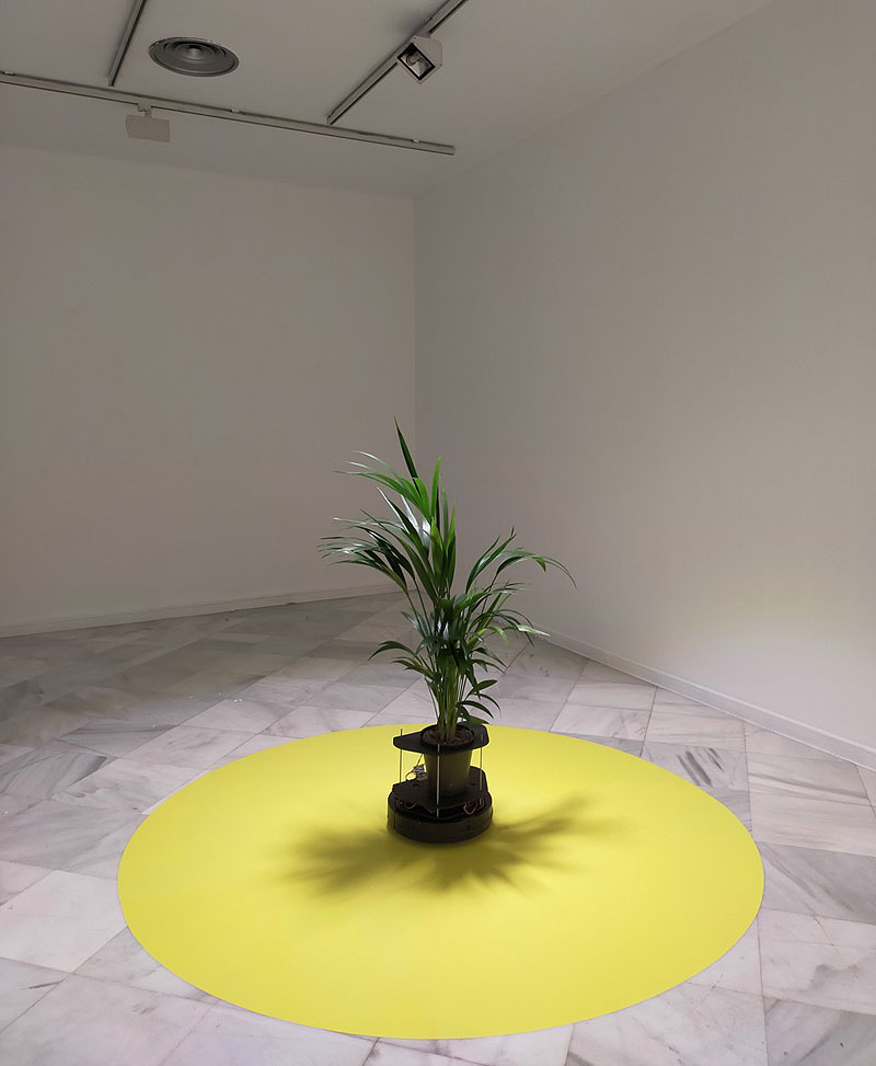Además, también se presenta por primera vez un prototipo de planta robotizada que evita la presencia de los humanos, moviéndose siempre en dirección contraria cuando detecta que alguien se le acerca lo suficiente. Sus derivas e interacciones provocadas por el público quedan registradas en un mapa diario, en el que podemos observar cómo los trazos efectuados por el plantoide a lo largo de la sala se dibujan siempre lejos de su puesto base, allí donde el vegetal puede hacer cómodamente la fotosíntesis, sin humanos que lo molesten.
