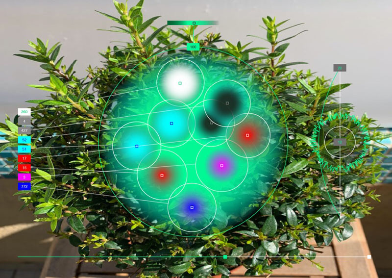 En “Traducir un bosque” Santiago Morilla presenta un sistema experimental de comunicación e interacción simbólica entre humanos y plantas, una red que nos invita a considerar que no somos únicamente espectadores, sino cocreadores de la realidad que compartimos con el ecosistema vegetal. Esta iniciativa de traducción nos invita a imaginar una manera más directa e intuitiva de considerar lo que nos están diciendo las plantas que nos rodean.