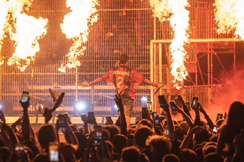 Arriba: Imagen del concierto de Travis Scott en Barcelona. Cortesía de F.c Barcelona y Spotify. / Abajo: Travis Scott