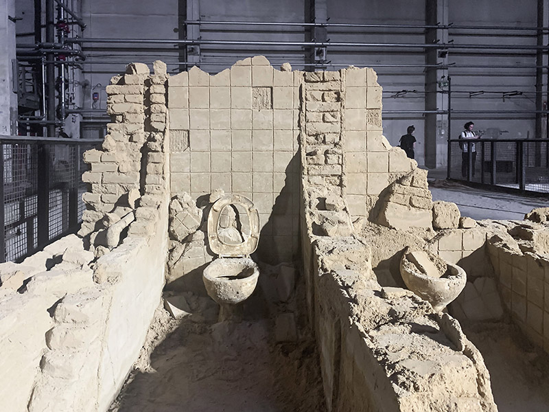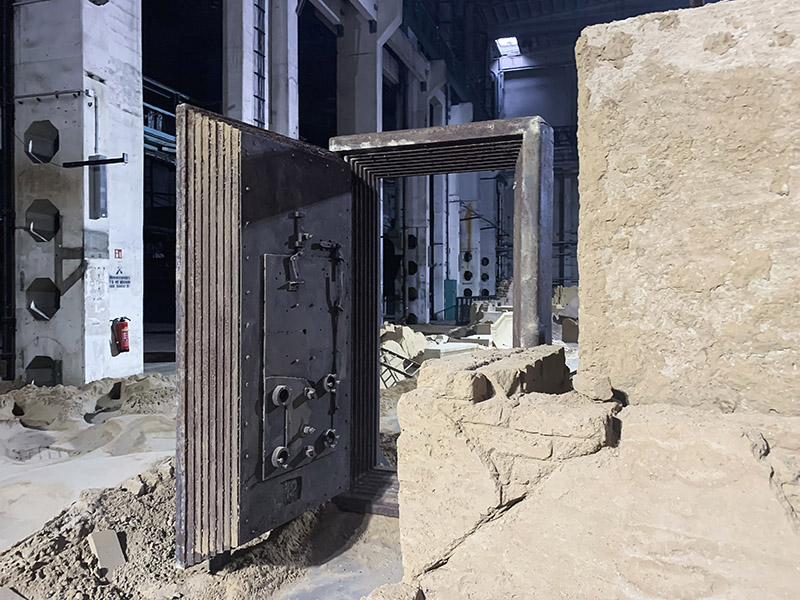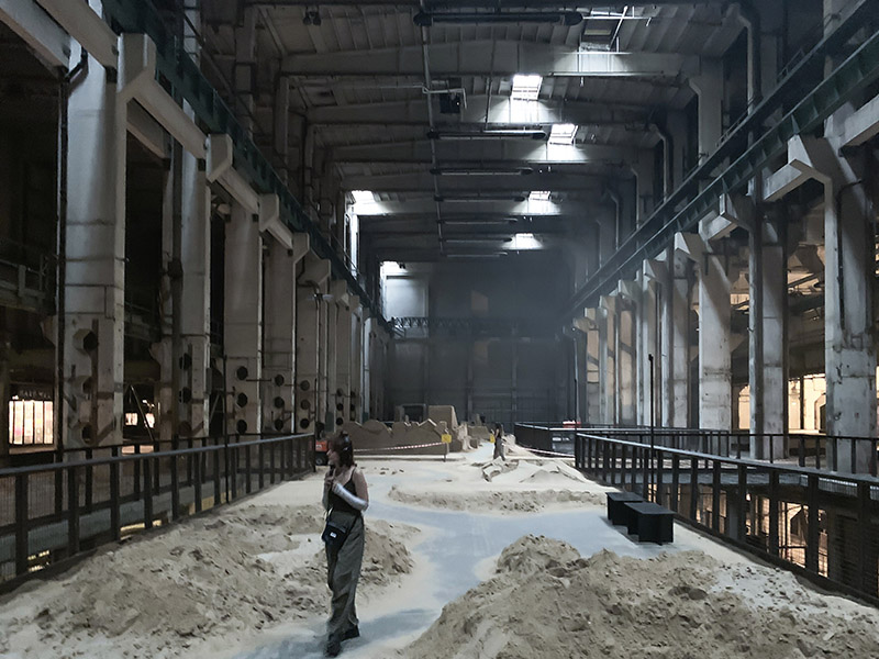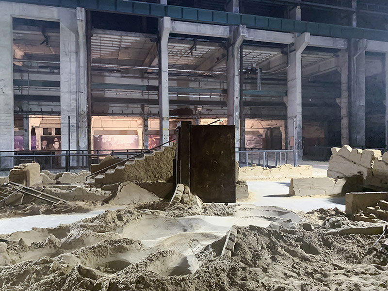 Quizá lo más destacado de “Tresor 31” se aloja en la tercera planta: una instalación de arena de la artista holandesa Anne De Vries (“Stomping Ground”) recrea el antiguo club Tresor con sus ceniceros, cajas de bebidas, butacas, aseos… ¡todo esculpido en arena! Sin embargo, la puerta acorazada que se exhibe es en realidad la original del jardín –la salida de emergencia del Tresor–, pues la otra se expone actualmente en el Humboldt Forum.