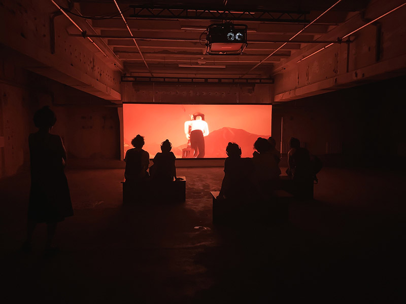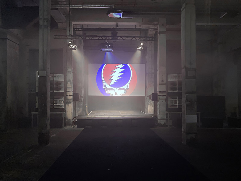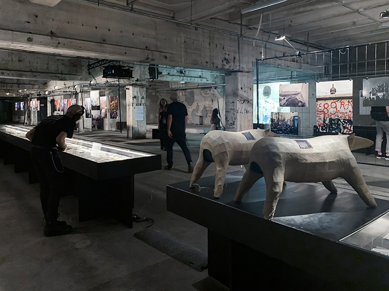 Una proyección de diapositivas sobre los inicios del Tresor da la bienvenida a los visitantes desde una de las toscas paredes de Kraftwerk.