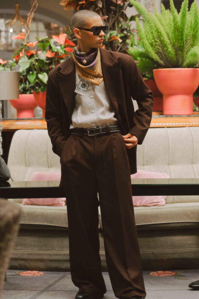 Antes de analizar con Marcos todas sus nuevas prendas, nos señaló que “la transformación de algunas de las piezas que caracterizan a esta generación, ha sido el punto de partida. Hemos metamorfoseado los maletines ejecutivos de cuero, por ejemplo, para añadir una estética mucho más chic”, y finalizó explicando que él quiere “hacer una representación de la asfixia social y emocional de los jóvenes”.