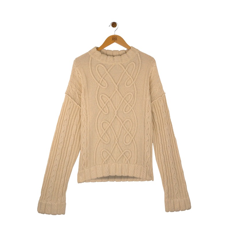 ¿Qué podemos decir de este jersey? Simplemente, que está confeccionado a mano por nuestros maestros artesanos de punto en el sur de España. Es una elegante pieza de lana de Alpaca y algodón orgánico. Es una manera de restablecer el uso de los suéteres de punto que llevaban esas élites de los ochenta.