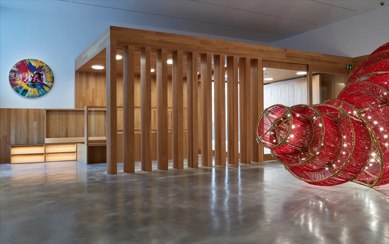 “Creo que es lo más exitoso que tiene este proyecto es la comunicación que se produce desde la calle Pizarro en el casco histórico hasta Camino Llano”, comenta Tuñón. Y es que el estudio ha conectado ambas calles a través del museo, y su jardín, donde se puede pasear entre obras expuestas al aire libre, como la escultura con forma de olivo de Ugo Rondinone. En el interior, los visitantes inician el recorrido con Descending Light, pieza del artista chino Ai Weiwei. Una gigantesca lámpara de 60.000 cristales rojos, que yace sobre el suelo de la sala como si hubiese caído del techo. En el exterior, las fachadas del museo y el almacén mantienen la misma estética blanca que las del hotel Atrio y la Casa Palacio Paredes-Saavedra. Ese característico muro perforado de hormigón que ya ha pasado a formar parte de la identidad contemporánea de la Ciudad Monumental.