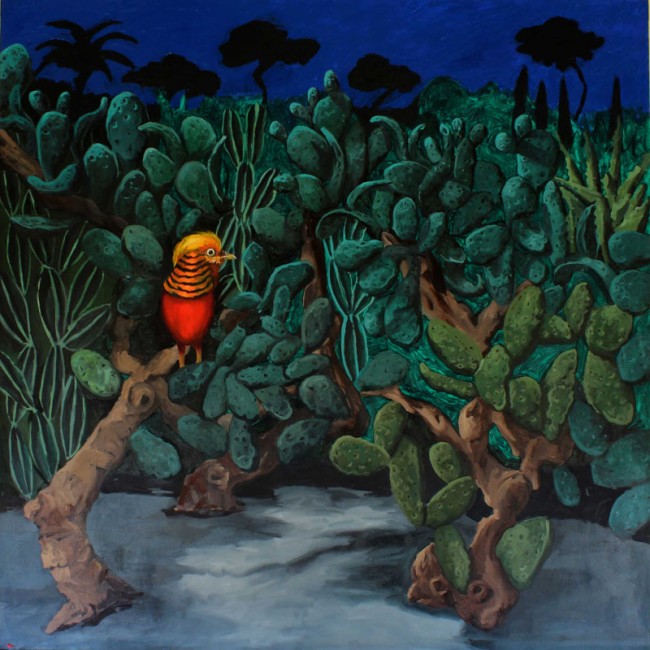 Arriba: Chrysolophus – Pictus. 2012, Óleo sobre lienzo 180 x 180 cm