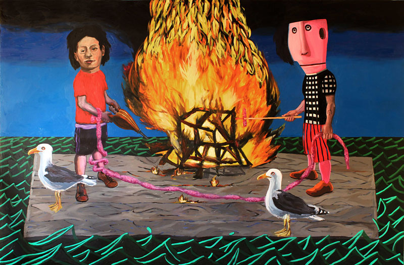 Arriba: La barbacoa. 2012, Óleo sobre lienzo 195 x 300 cm