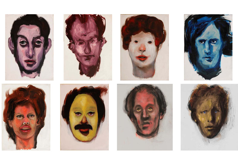 Arriba: Cabezas. 2012, diferentes medidas y técnicas.