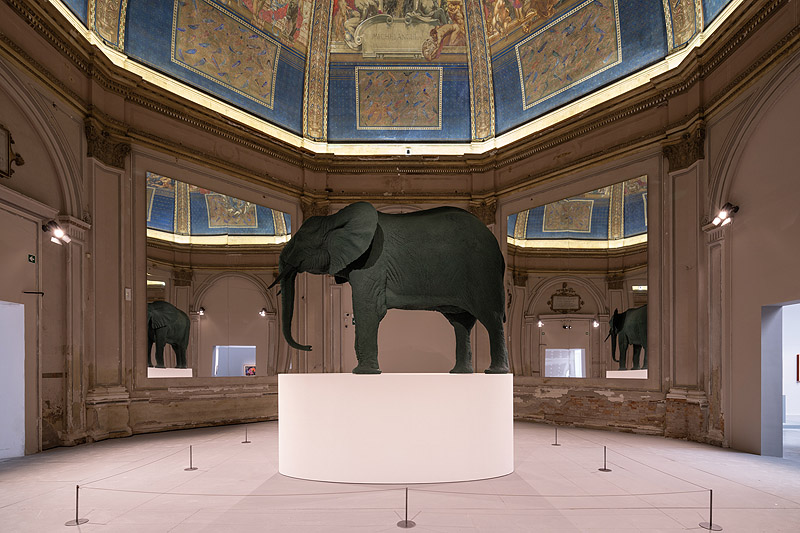 Imagen superior: Katharina Fritsch, Elephant. 1985. Bienal de Venecia. Foto: Roberto Marossi.