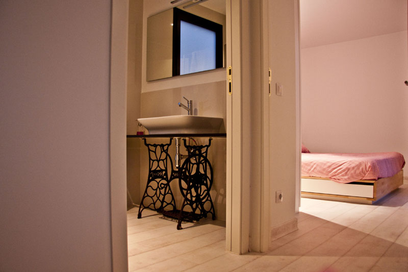 El cerramiento interior está conformado por aislamiento de lana de oveja (Marca: RMT-Nita Distribució Sostenible Aillants Renovables) así como paneles de fibra de celulosa y yeso natural para los parámetros interiores (sustituyendo el tradicional Pladur por una composición ecológica (Marca Fermacell)
