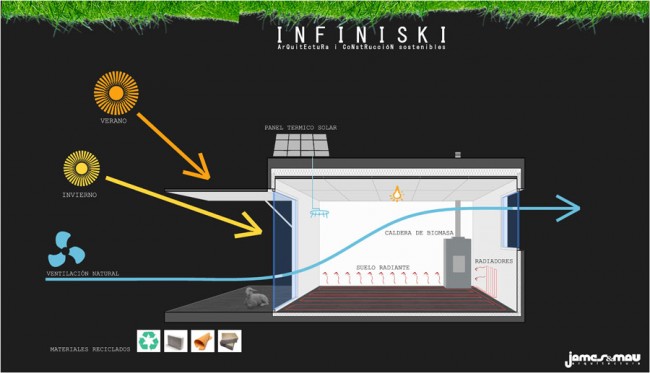 Es un ejemplo de casa prefabricadas eficiente. Para el proyecto han utilizado el sistema de construcción Infiniski, basado en un sistema modular prefabricado. Infiniski es un sistema para desarrollar proyectos de edificación con criterios de sostenibilidad, diseño bioclimático y eficiencia energética.