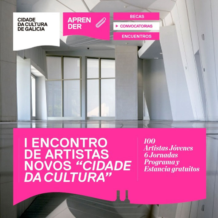 Los artistas jóvenes cuentan con una nueva fecha y destino a marcar en su agenda de verano: del 4 al 9 de septiembre en la Cidade da Cultura de Galicia (Santiago de Compostela). Durante seis días, el complejo cultural acogerá el “I Encontro de Artistas Novos. Cidade da Cultura”, en el que jóvenes de España y otros países convivirán con artistas ya consolidados, como Pierre Gonnord, Daniel Canogar, Fernando Sánchez Castillo o Ramón Ramos Balsa, entre otros, además de con directores de museos, responsables de centros culturales, diseñadores, comisarios o críticos de arte.