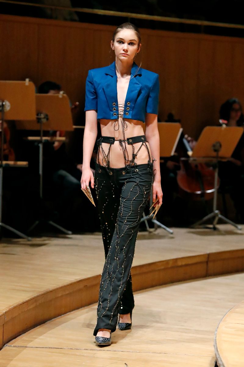 El tiro bajo a la máxima potencia, lo diseña María Panchevski. Las prendas que mostró en el desfile de fin de grado, dejó claro que los noventa son su filosofía. Botas altas, vestidos asimétricos o pantalones sin estructura, fueron las piezas claves de la línea. Muestran a una mujer fuerte, sin miedos.