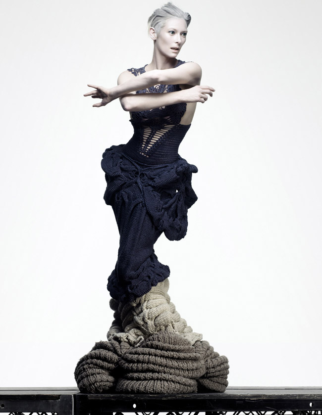 Tilda Swinton es la imagen del cartel de la última exposición del Museo de la Moda de Amberes, MoMu: Unravel: Knitwear in Fashion. Un manifiesto de la relevancia del punto en la historia de la moda a través de piezas de vanguardia. Desde Schiapparelli o Chanel, a Maison Martin Margiela o Sandra Backlunde, pasando por Vivienne Westwood o Sonia Rykiel y, por supuesto, Benetton. Desde hace más de 40 años, la firma italiana ha sido el máximo exponente del jersey democrático, en todos los colores. Una historia contada a través de una vídeo instalación con las piezas creadas para el desfile del 40 aniversario de Benetton en el Centro Pompidou de París. El propio catálogo de la exposición, editado por el MoMu, incluye imágenes del Archivo Histórico de Benetton en Castrette (Treviso, Italia). El cual, con más de 12.000 míticas prendas de punto, es en sí mismo un museo. Hasta el 16 de agosto de 2011 en el MoMU.