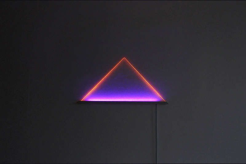 “El segundo reto era diseñar una lámpara de luz negra pero sofisticada. Siempre me ha gustado la luz negra y su efecto mágico consiguiendo que todo brille, pero por las connotaciones que tiene la luz negra era un reto conseguir integrarla en un espacio actual. Todos estamos familiarizados con los posters psicodélicos de los 60 o las luces de las pistas de patinaje y las casas del terror, por ello tenemos esa percepción de la luz negra. Se me ocurrió que si reducía la luz a una forma geométrica básica -una simple línea de luz- su tecnología se apreciaría por sus cualidades fundamentales.”
