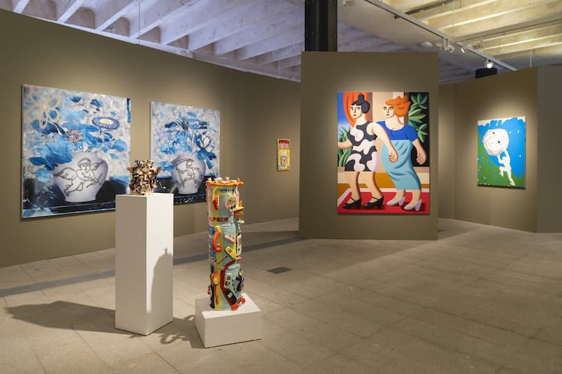 Izq: Los Bravú. Galería Yusto/Giner (Marbella, Madrid). Der: An Wei, “TUTOR”, 2023. Berlín Galería (Sevilla)