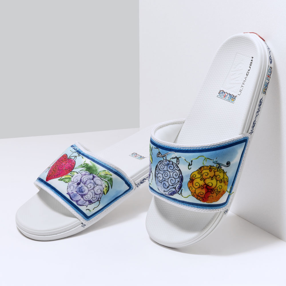 Otro de los iconos de la colección de Vans y One Piece es la zapatilla Vans Classic Old Skool. Este modelo representa las frutas del diablo con poderes sobrehumanos. Muchos de los protagonistas del animé las consumen, pero tienen una contraindicación. Y es que les impide nadar. Algo que para un pirata, siempre rodeado de agua, es importante.