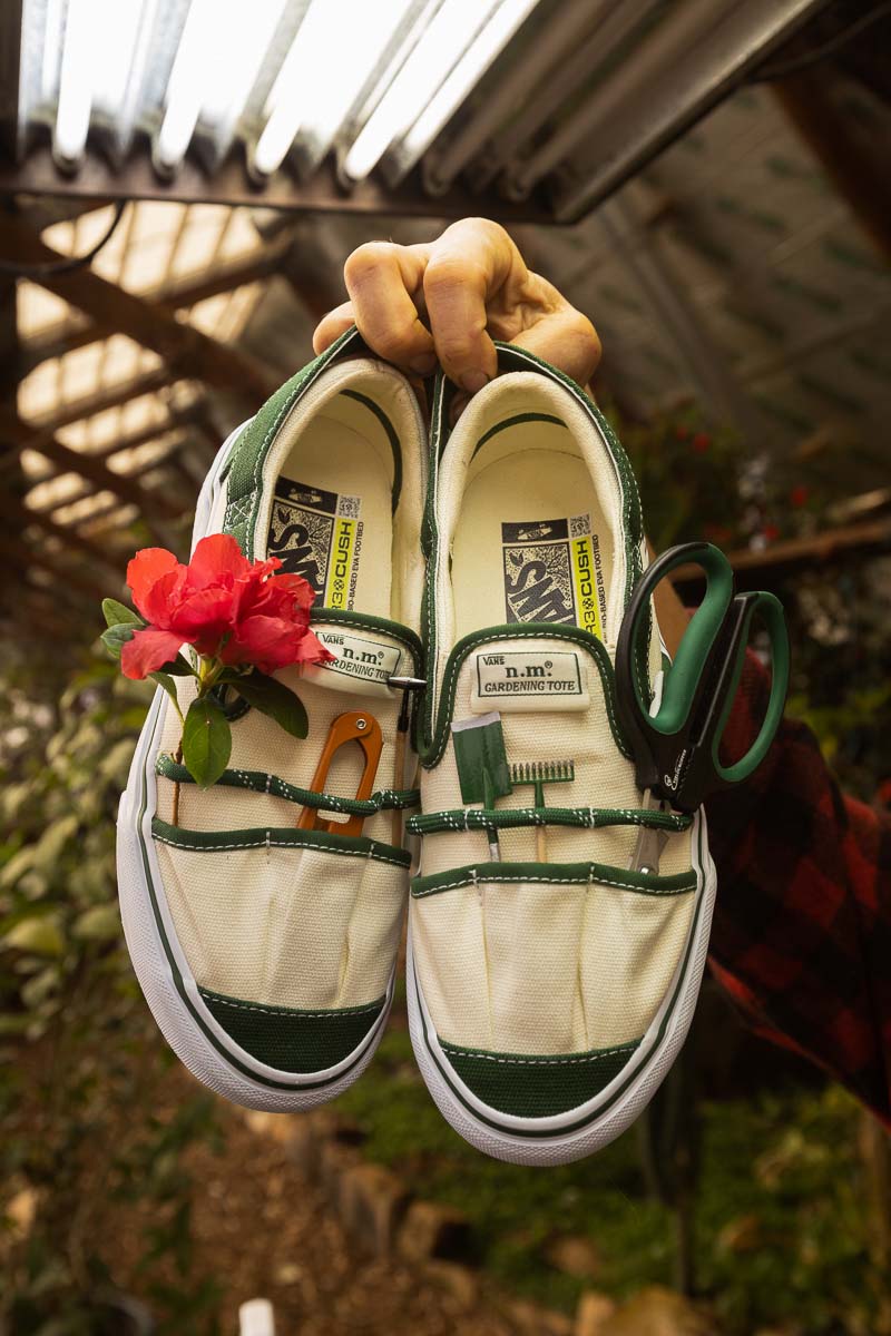 Si sois fanáticos de la jardinería y el DIY; tenemos las zapatillas perfectas para vosotros. Nos llega la colaboración de Vault By Vans X Nicole Mclaughlin, quien interviene y transforma las clásicas Slip-On en zapatillas utilitarias gracias a sus construcciones en lona con bolsillos para herramientas inspiradas en bolsas de jardinería.