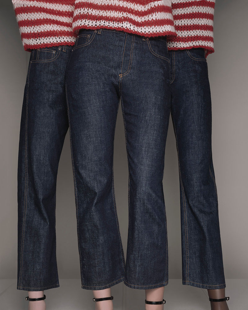 Los D07, por el otro lado, son una prenda pensada para quienes quieran jugar con las proporciones extremas. Son de corte acampanado, como muchos de sus hermanos, pero ahora las dimensiones se marcan mucho más con una cintura estrecha y ceñida que va ensanchándose a partir de las caderas. Este corte nos recuerda mucho a siluetas de la vanguardia japonesa y, con su pernera tobillera, se convierten en un par de vaqueros ideales para la primavera… y con sneakers no se verían tan mal. Si os va el corte tobillero, pero no queréis una prenda de silueta tan extrema, el modelo D03 straight cropped puede ser lo que buscáis. Gracias a sus proporciones más armoniosas y equilibradas, estos vaqueros de corte recto son un estilo indispensable para cualquier armario… lo mejor de todo: son súper atemporales.