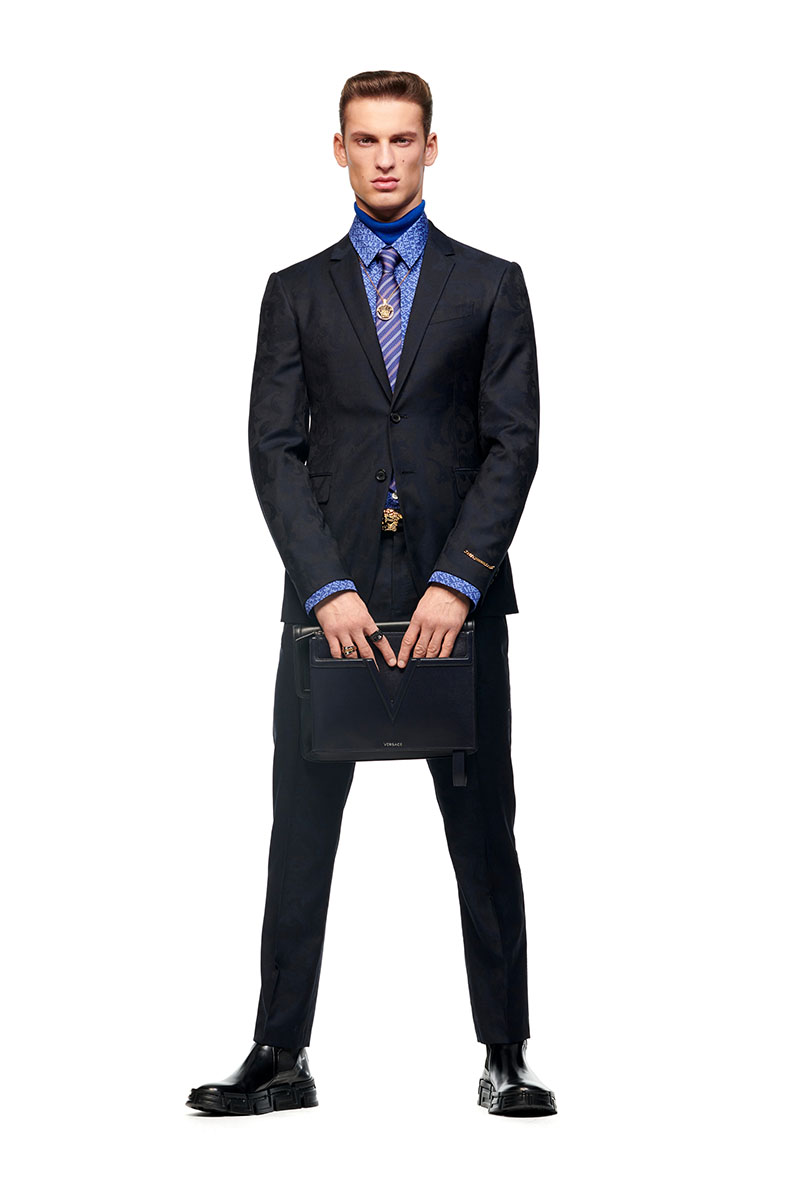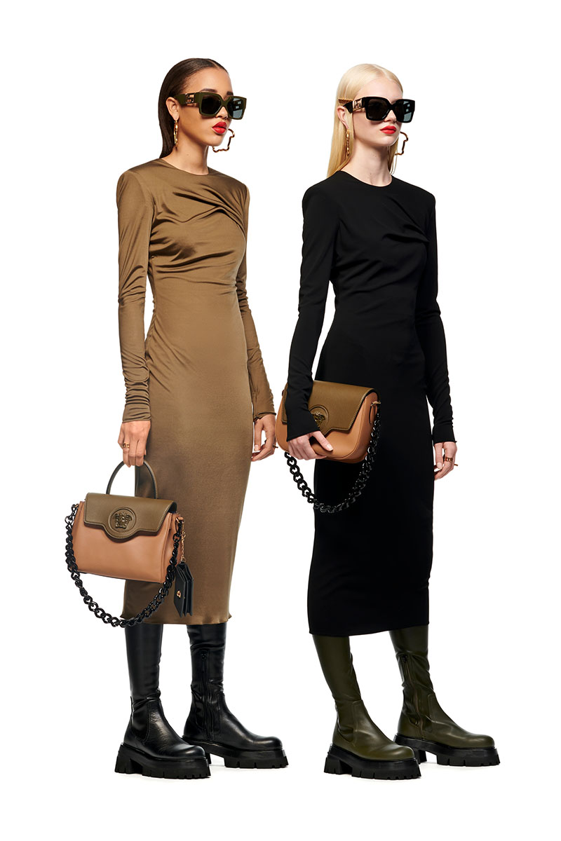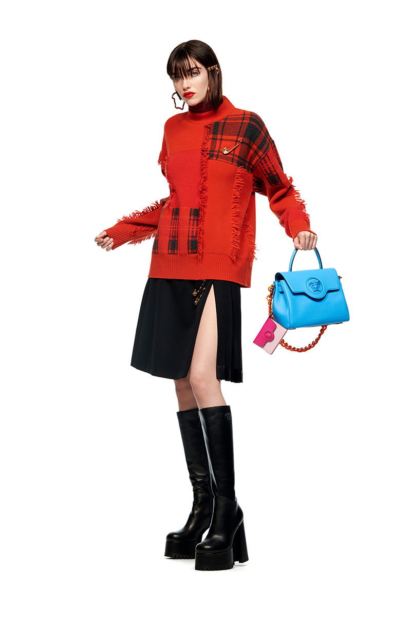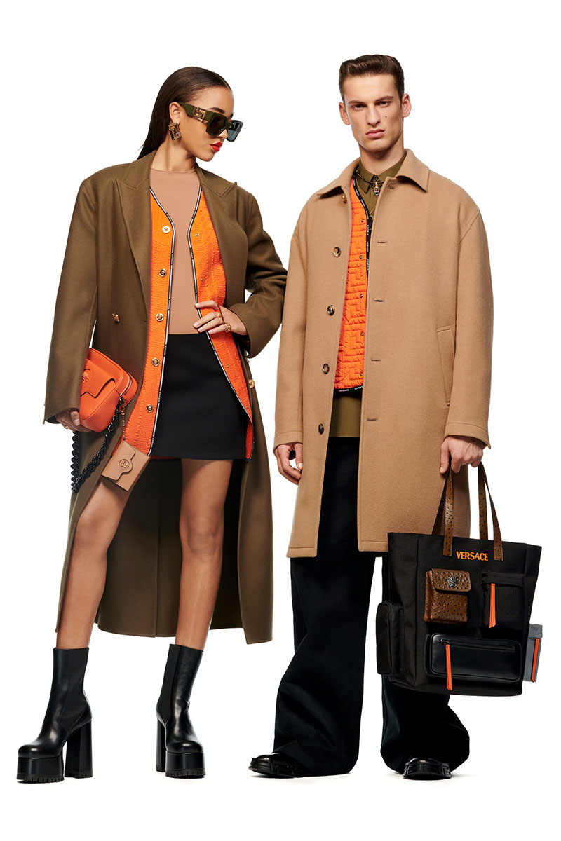 El toque contemporáneo lo dan los detalles en otros colores como el rojo, el naranja y o el azul eléctrico, presentes en la mayoría de las prendas. La colección también cuenta con una serie de prendas con un estilo más street como las sudaderas, los puffers y los abrigos de trench largos acolchados. Como novedad incluyen una silueta dentro de los accesorios: El nuevo bolso de mano “La Medusa” de estilo hobo viene en tres tamaños diferentes y renueva la clásica linea Virtus con nuevos acabados en piel sintética ecológica.