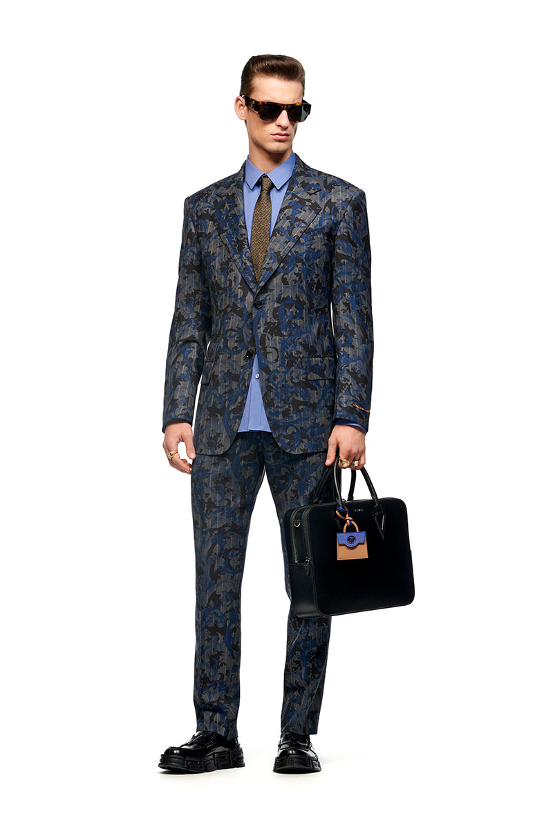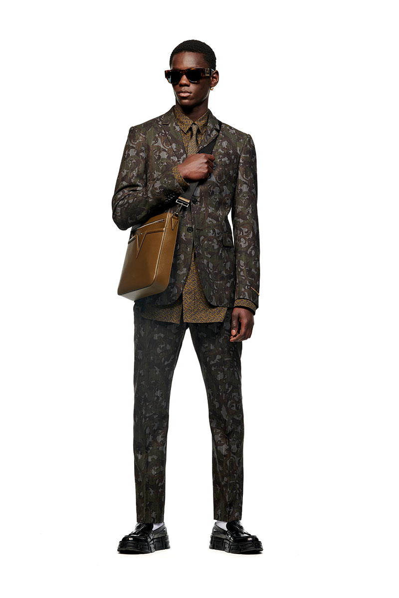 Entre los diseños masculinos de la nueva colección Le Muse de Versace Pre-Fall 2021 nos encontramos con siluetas tan dispares como las prendas de ropa deportiva que se mezclan con las piezas de cachemira, las camisas estilo oxford con toques de franela y la ropa técnica utilitaria. Este choque de estilos convierte a los looks en auténticos uniformes de estilo para el día a día de cualquier style hunter que se precie. Como novedad presentan dos variaciones del estampado militar “Baroccoflage” de Versace, en esta ocasión en caqui-marrón y azul marino-eléctrico.