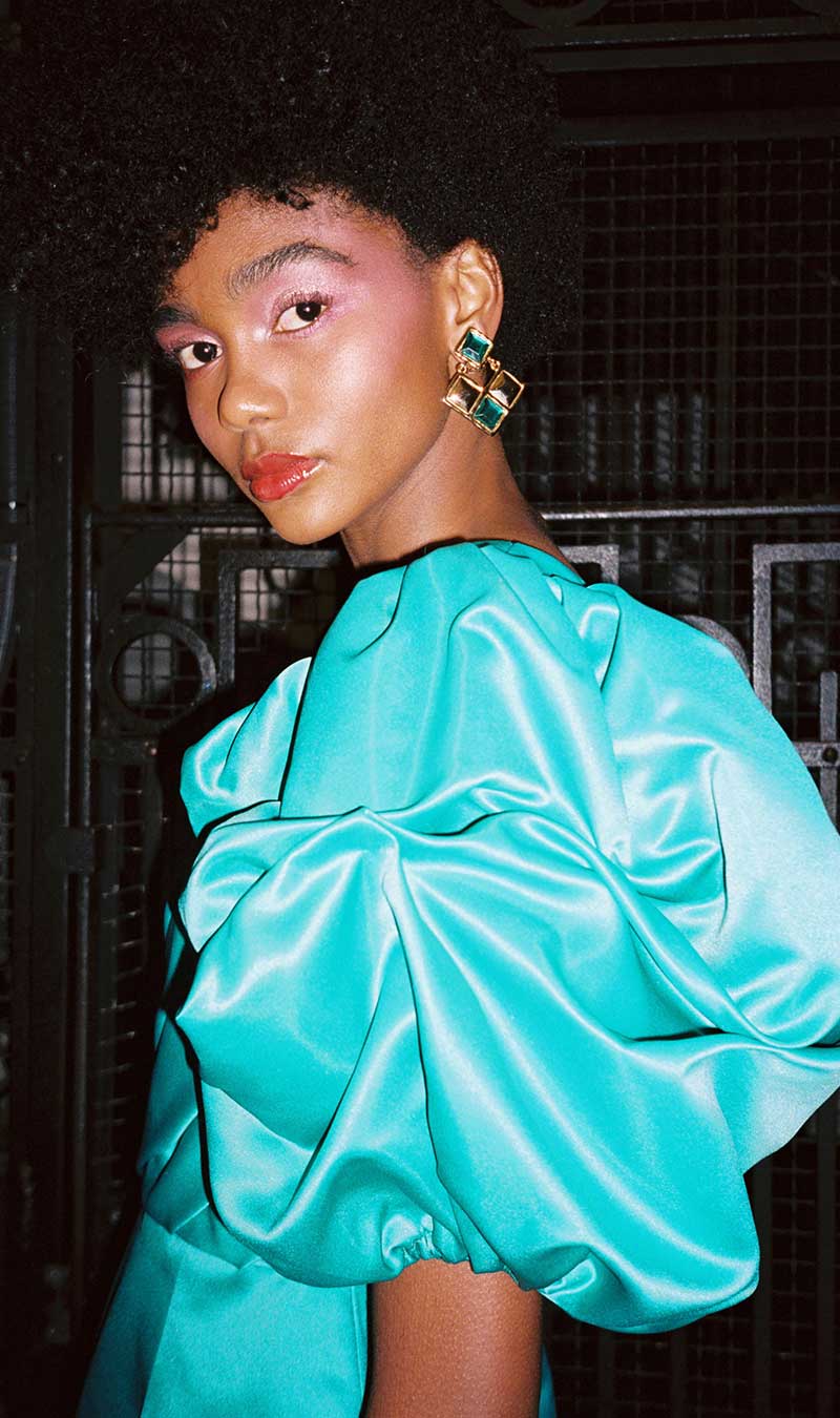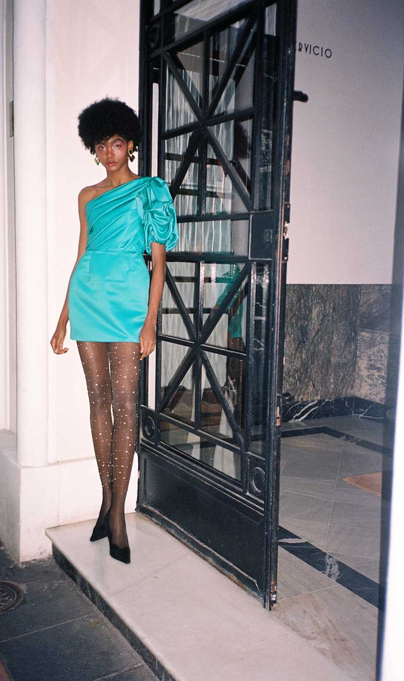 Arriba y Abajo: Vestido de fiesta verde Alejandro Resta + Pendiente Osb Vintage + Medias Zara