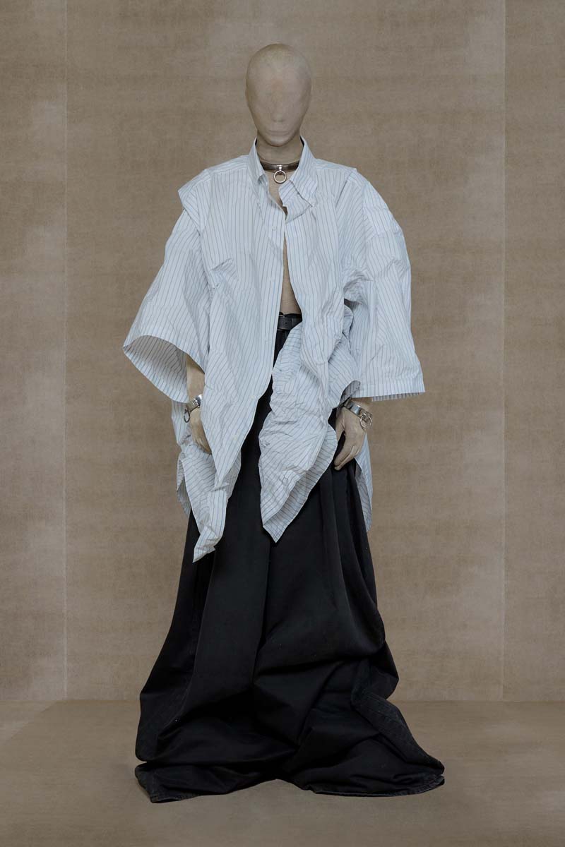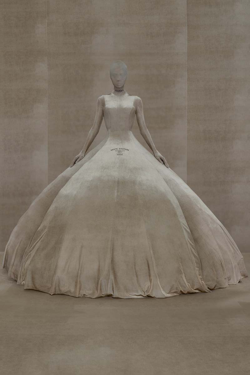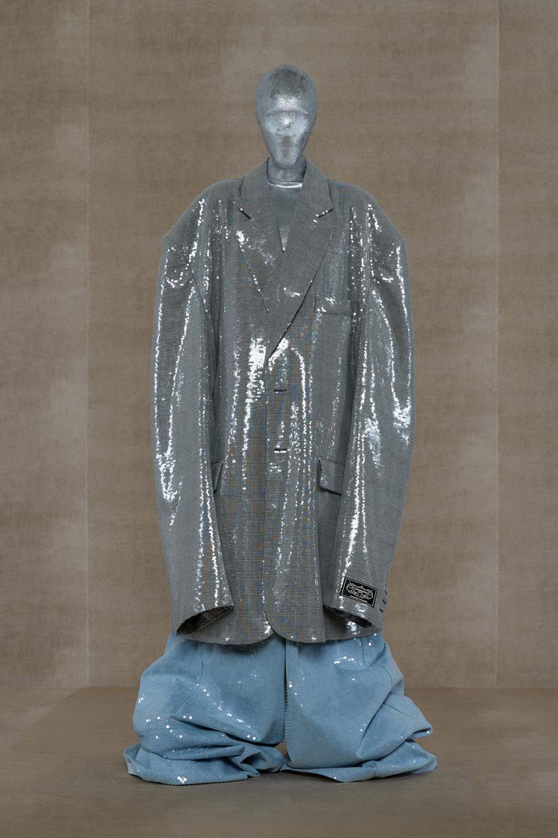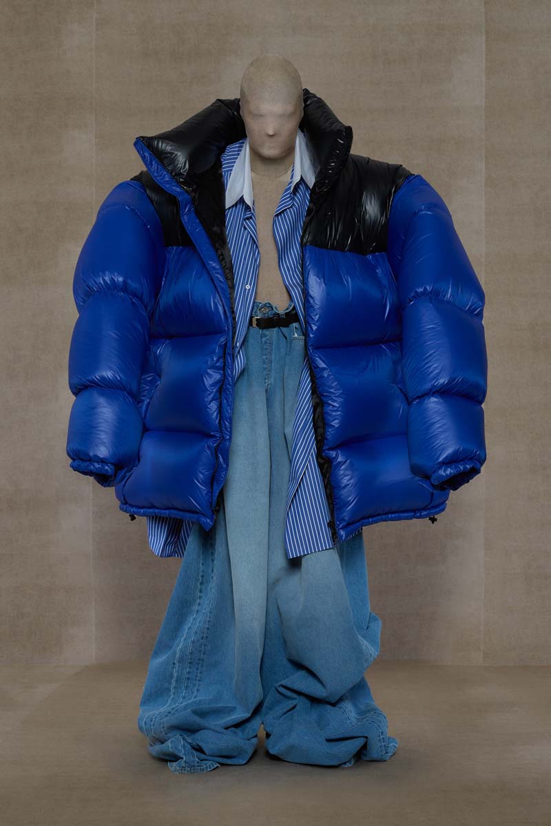 Vetements profundiza la exageración vanguardista de los volúmenes del high street, los pilares del armario clásico y los códigos de la alta costura para su colección SS24.