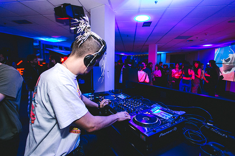Desde la calle se veian unas extrañas luces de neón en lo alto de un edificio. Era Japón. Subimos en un ascensor, todavía todo muy castellano. Pero cuando atravesamos una puerta, de repente cruzamos la frontera japonesa. Era como habernos transportado al típico club nipón en lo alto de un rascacielos. Dentro había de todo: puestos de comida callejera, maestros tatuadores como Jun Chihara realizando demos de body-paiting, djs muy cracks donde no podía faltar YYOIY… también Mygal… y la british Siobhan Bell que rememoró sonidos de los 90 como el jersey club… y otras muchas combinaciones de beats.