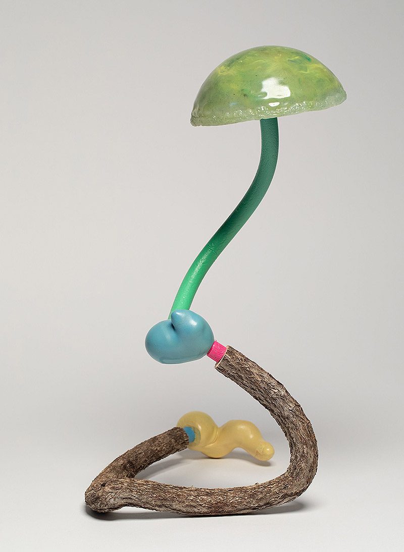 Lampshares representa la faceta más reciente y material de la artista. En colaboración con Inner City Green Team y Gary Dusek, Rottenberg transforma su estudio de Nueva York en un laboratorio de regeneración. Utiliza enredaderas amargas que invaden los bosques del norte del estado y plásticos reciclados de contenedores locales. Con estos materiales crea esculturas funcionales. Basura convertida en arte. Lo tóxico se transforma en materia poética.