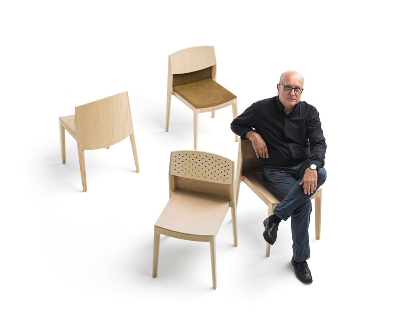 Vicent Martínez: La madera que se utilizará es la de haya, procedente de bosques de producción de silvicultura controlada. El otro componente es el tablero contrachapado de haya y curvado en prensas de alta frecuencia. Todas las piezas son de madera maciza y con la opción de asientos y respaldos tapizados.