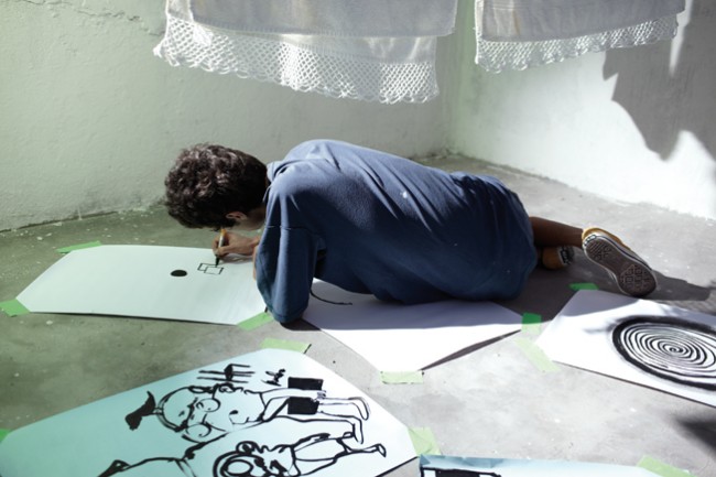 Bruno Kurru, influenciado por la escena skate de Sao Paulo, su ciudad de origen, ha elegido el dibujo y la pintura como medios de expresión. Con la inquietud propia de alguien con 25 años, Bruno utiliza la superficie plana para cuestionar las claves de su existencia. En este proceso de auto búsqueda, la única certeza es el placer por el camino elegido: la creatividad. Exactamente la misma ruta que recorre el resto de jóvenes artistas que semanalmente nos presenta Converse.