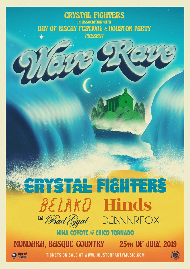 Mañana jueves 25 de julio se celebra el Wave Rave de Crystal Fighters en Bermeo (Bilbao). El festival nace por iniciativa de la banda británica para promover la conciencia a favor de la sostenibilidad, el medio ambiente y la cultura local. Para ello es fundamental la ubicación elegida: una plataforma natural con vistas a la maravillosa playa Aritzatzu. No es la primera vez que Crystal Fighters monta algo así, algunos ya recordareis la que lió en 2013 en las cuevas de Zugarramundo con la Cave Rave. Puesto promete algo parecido, o mejor, porque en esta ocasión Crystal Fighters presenta su nuevo y cuarto álbum en su concierto, el principal de la noche. Pero que nos lo cuenten los mismísimos Crystal Fighters y Hinds.