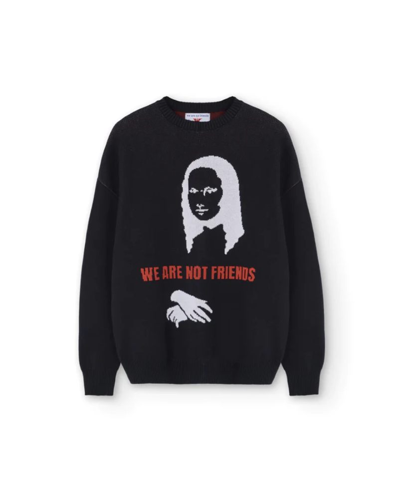 Terminamos con este suéter en color negro y con el gráfico más famoso del mundo. Por supuesto que es la representación de La Gioconda y no podemos decir que no a este diseño. Además, si te fijas, no es igual que los otros que tiene este dibujo. Aquí se apostó porque sea en blanco y sin renunciar al punto.