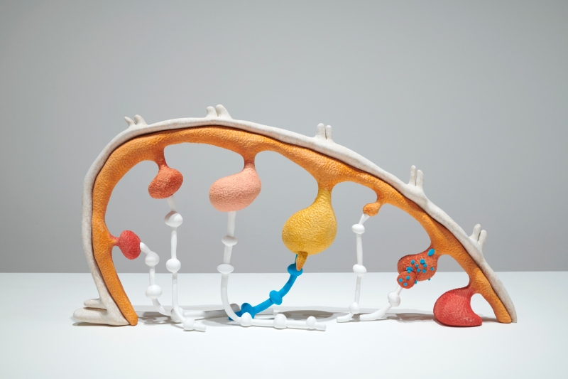 Las obras de los artistas Franz West, Olaf Brzeski y Matthew Ronay utilizan formas para evocar lo abyecto, lo cómico y lo absurdo. Las inesperadas protuberancias y curvas de estas esculturas pueden evocar diferentes sensaciones. Desde asociaciones con organismos vivos a formaciones geológicas o a helado derretido. Mientras tanto, con su estructura de neón, similar a una montaña rusa, la escultura a gran escala de EJ Hill evoca recuerdos de movimiento radical y euforia visceral. Mediante esta escultura, el artista vincula la exclusión histórica de los afroamericanos en los parques de diversiones en áreas de EE.UU.