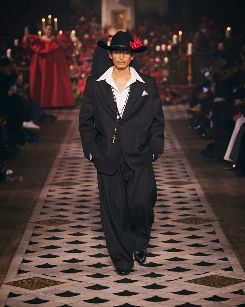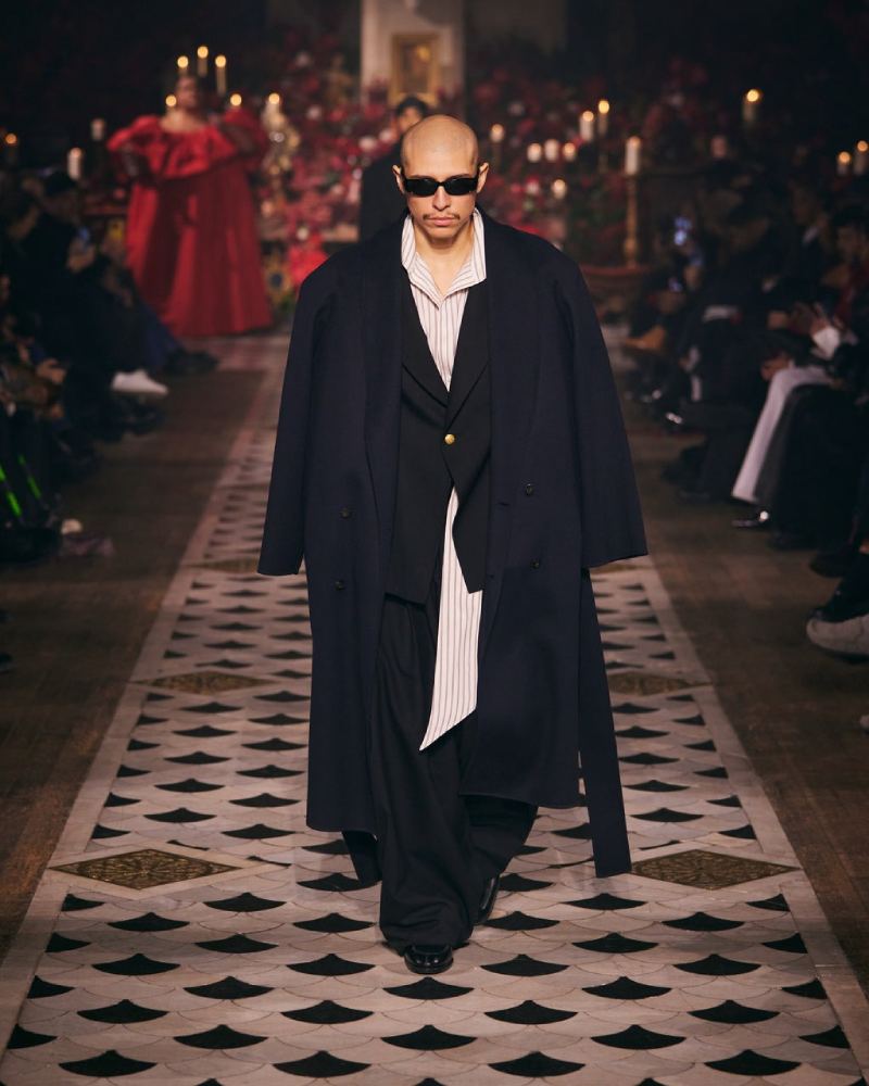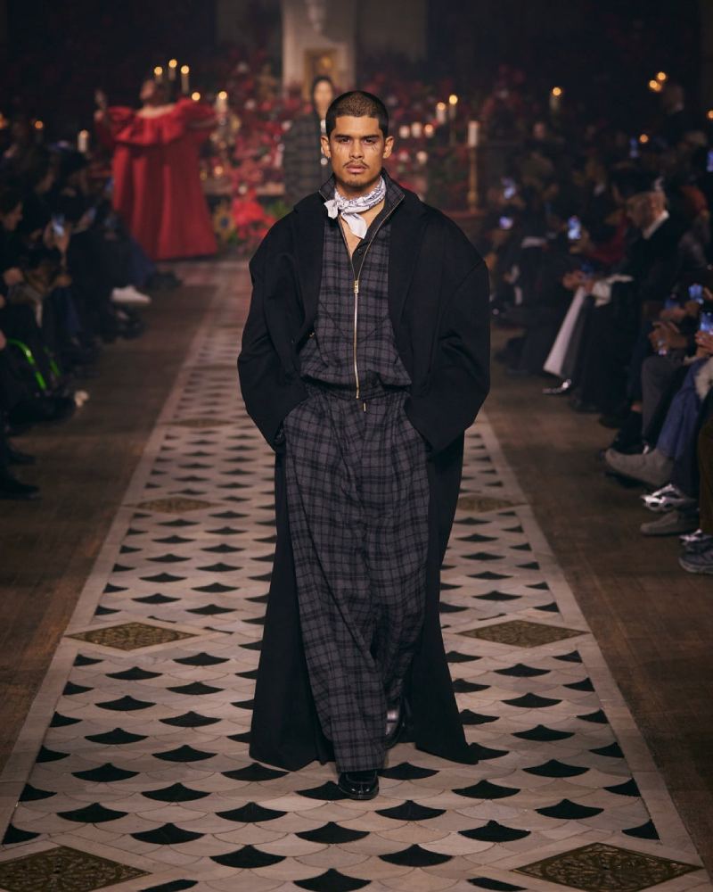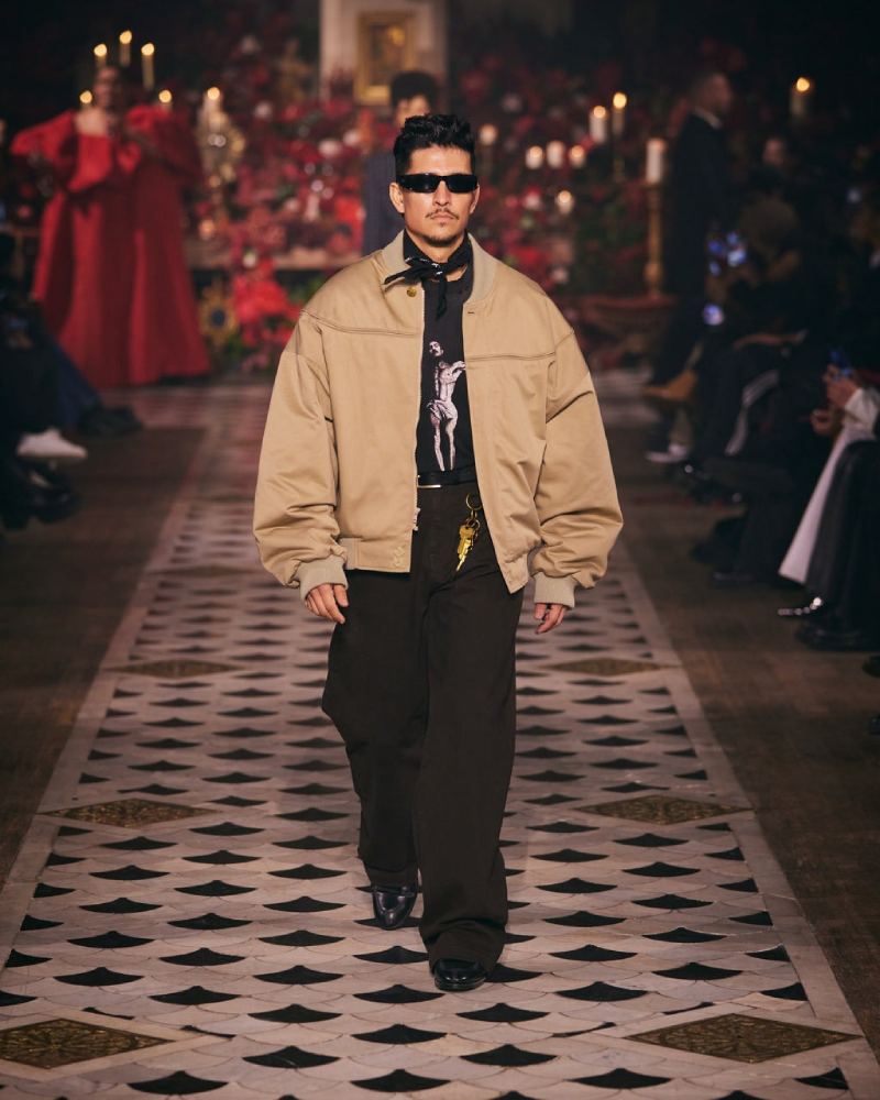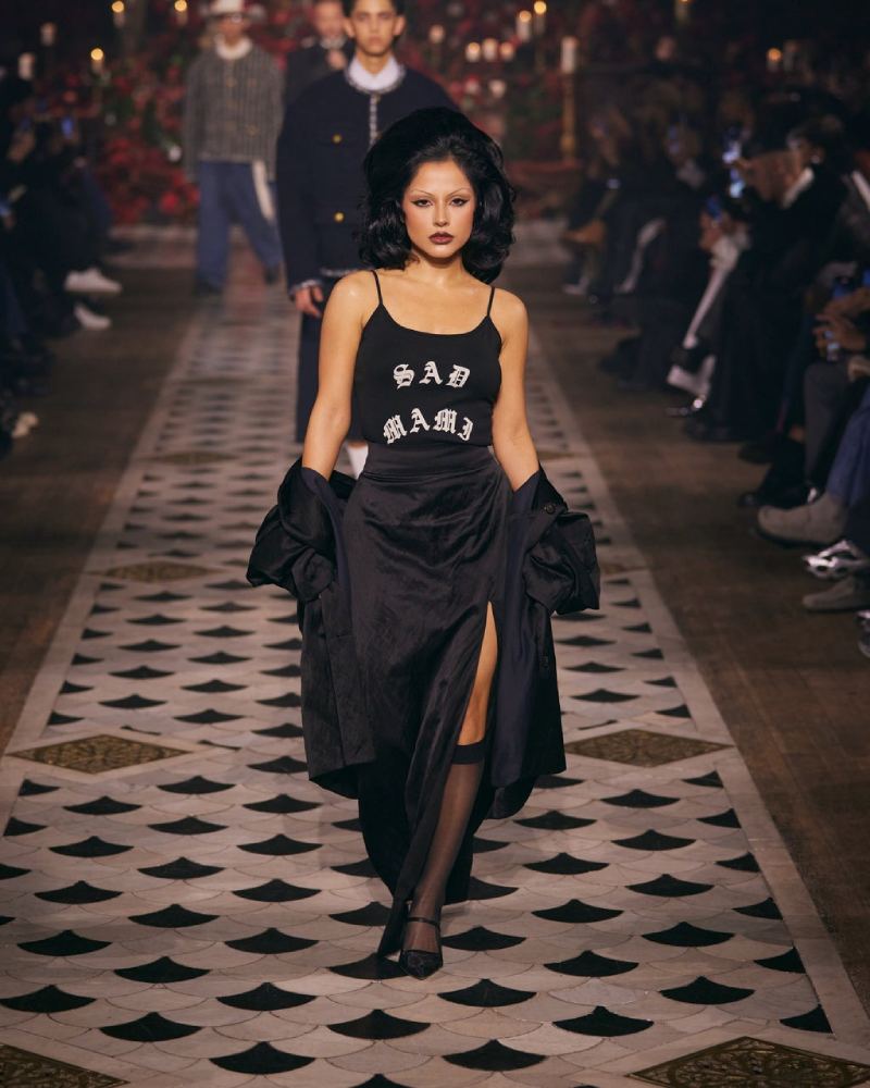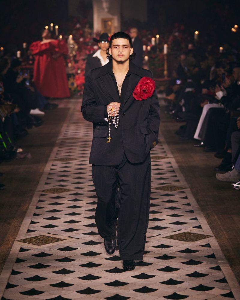 La colección FW25 de Willy Chavarria es una celebración a una década de trabajo, materializada a través de los pilares más definidos de su lenguaje de diseño. Y, para estrenarse, organizó un desfile en una catedral que iba extremadamente acorde con el theme de su colección, Tarantula. Y claro, al ser un favorito del “if you know, you know” la pasarela estaba plagada de gente que le ha apoyado. Entre ellos, vimos a gigantes como J Balvin y Valentina Ferrer desfilando looks. Pero también, había mayor players de su industria, como Jerry Lorenzo de Fear of God; pero ya eso es un cuento para otro día.