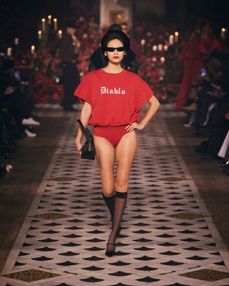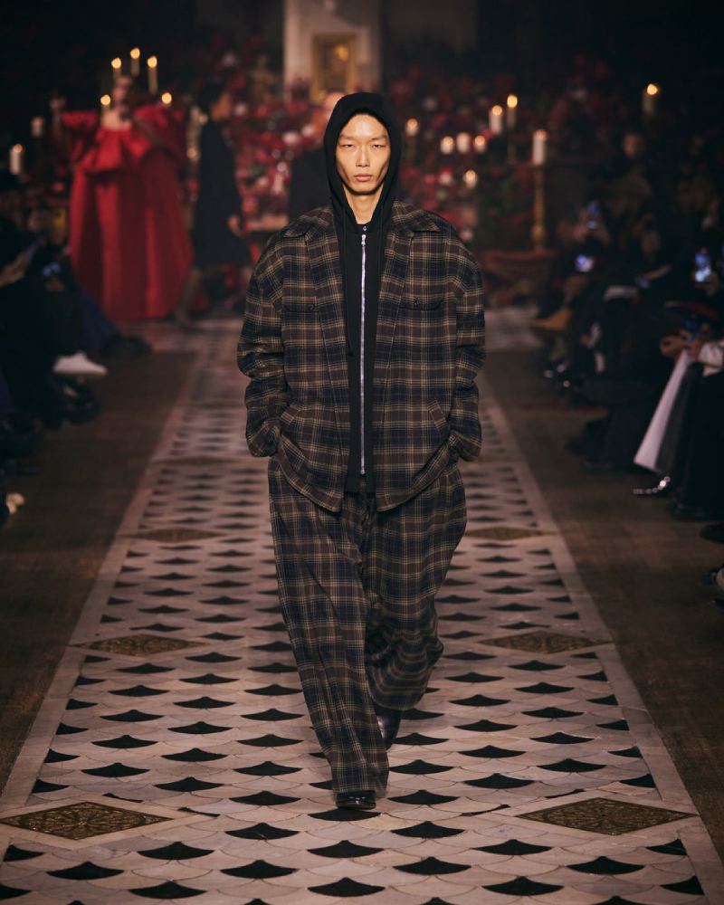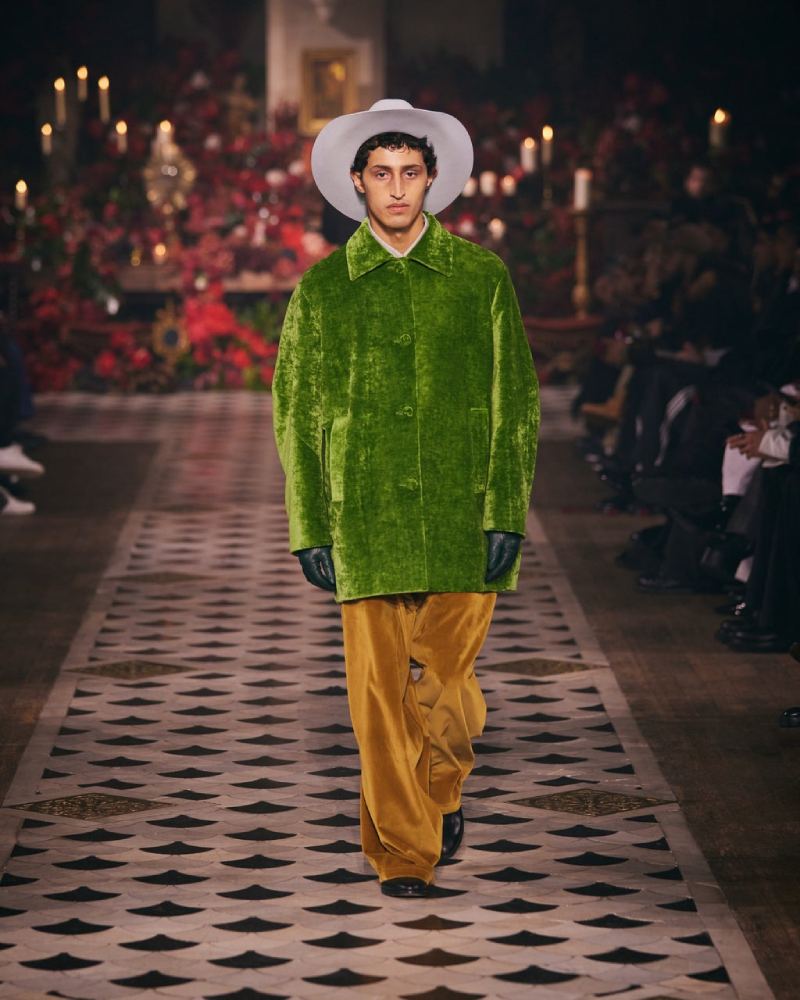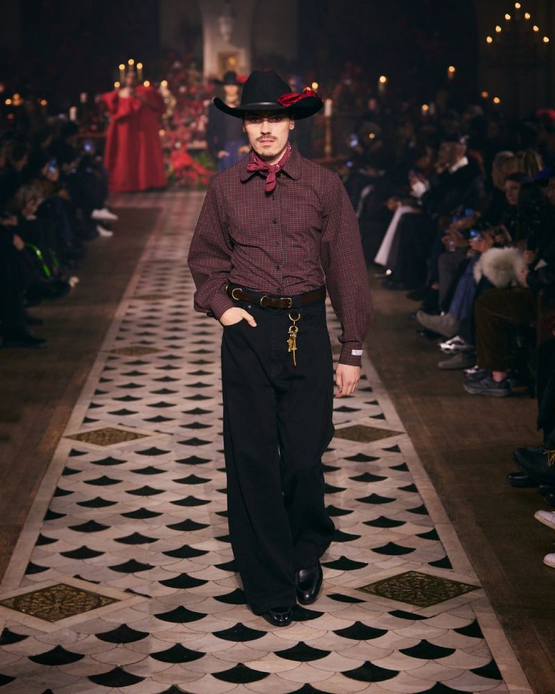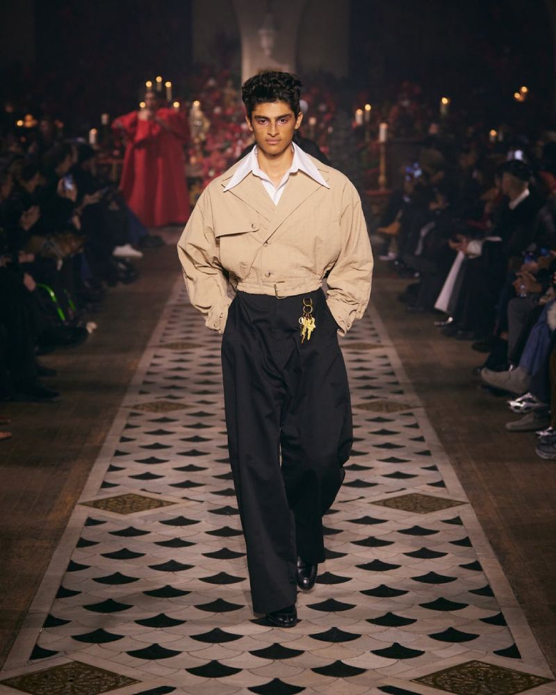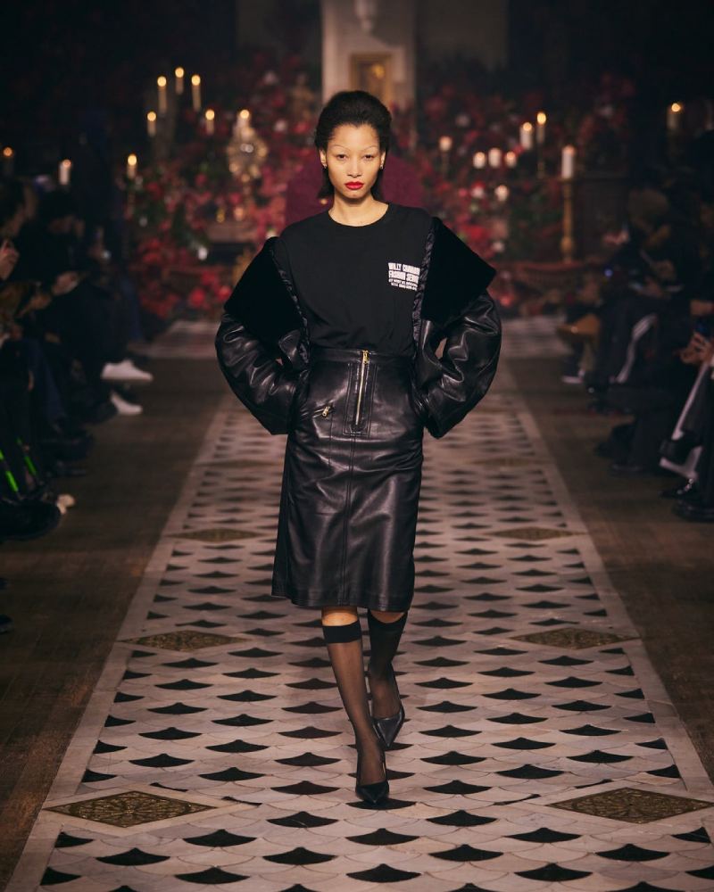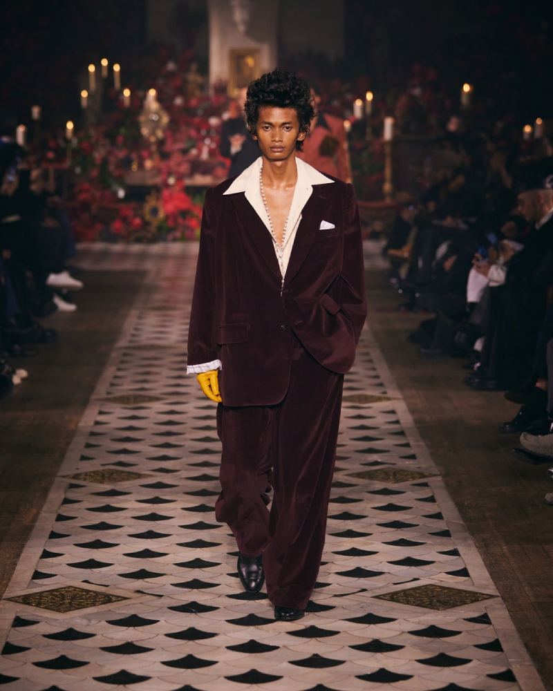La colección FW25 de Willy Chavarria es una celebración a una década de trabajo, materializada a través de los pilares más definidos de su lenguaje de diseño. Y, para estrenarse, organizó un desfile en una catedral que iba extremadamente acorde con el theme de su colección, Tarantula. Y claro, al ser un favorito del “if you know, you know” la pasarela estaba plagada de gente que le ha apoyado. Entre ellos, vimos a gigantes como J Balvin y Valentina Ferrer desfilando looks. Pero también, había mayor players de su industria, como Jerry Lorenzo de Fear of God; pero ya eso es un cuento para otro día.