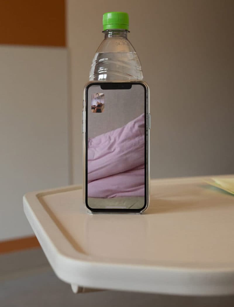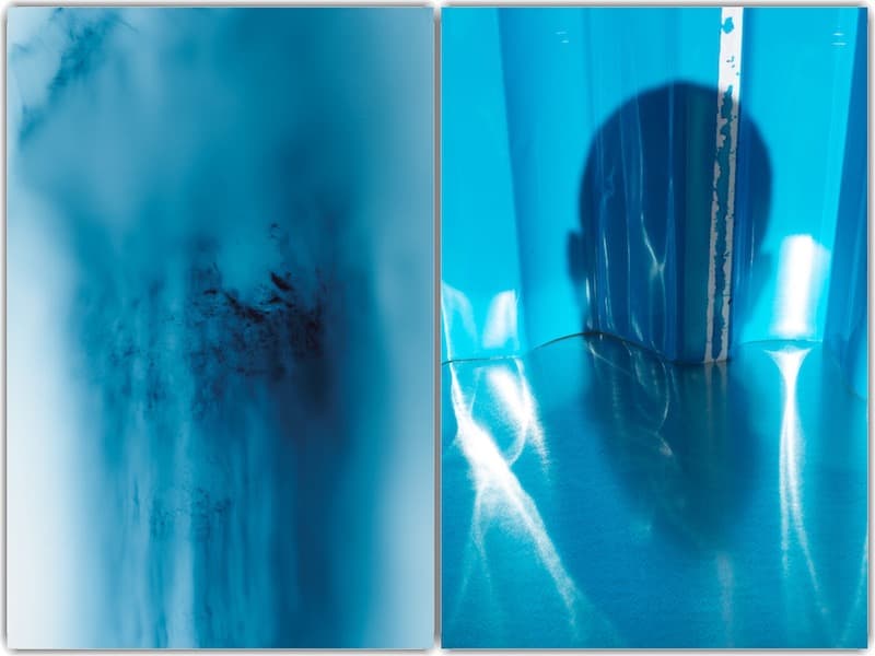 Izq: blue self–portrait shadow, 2020. Der: Freischwimmer, 2012