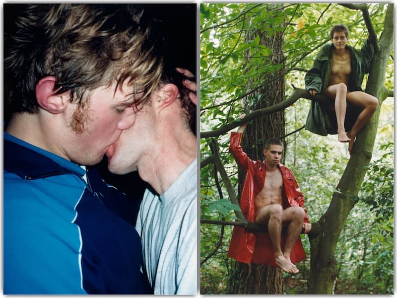 Izq: The Cock (kiss), 2002. Der: Lutz & Alex sitting in the trees, 1992