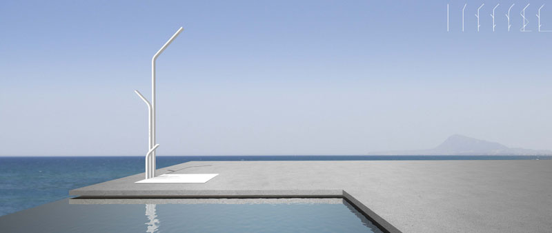 Arriba: Proyecto Odeit, una ducha de vapor. Diseñado por Iñaki Beistegui mención especial del IX Concurso Internacional de Diseño de mobiliario de exterior de GANDIABLASCO