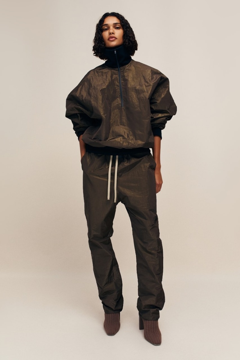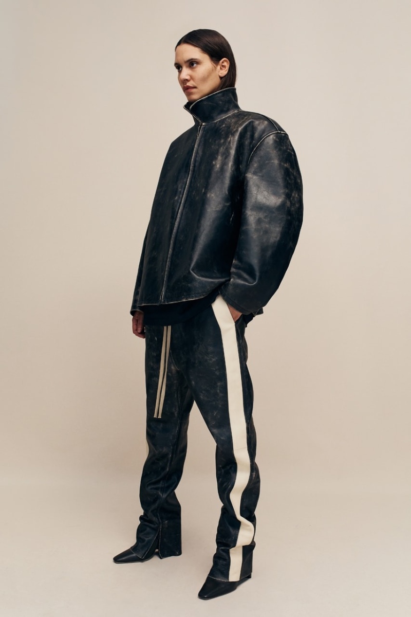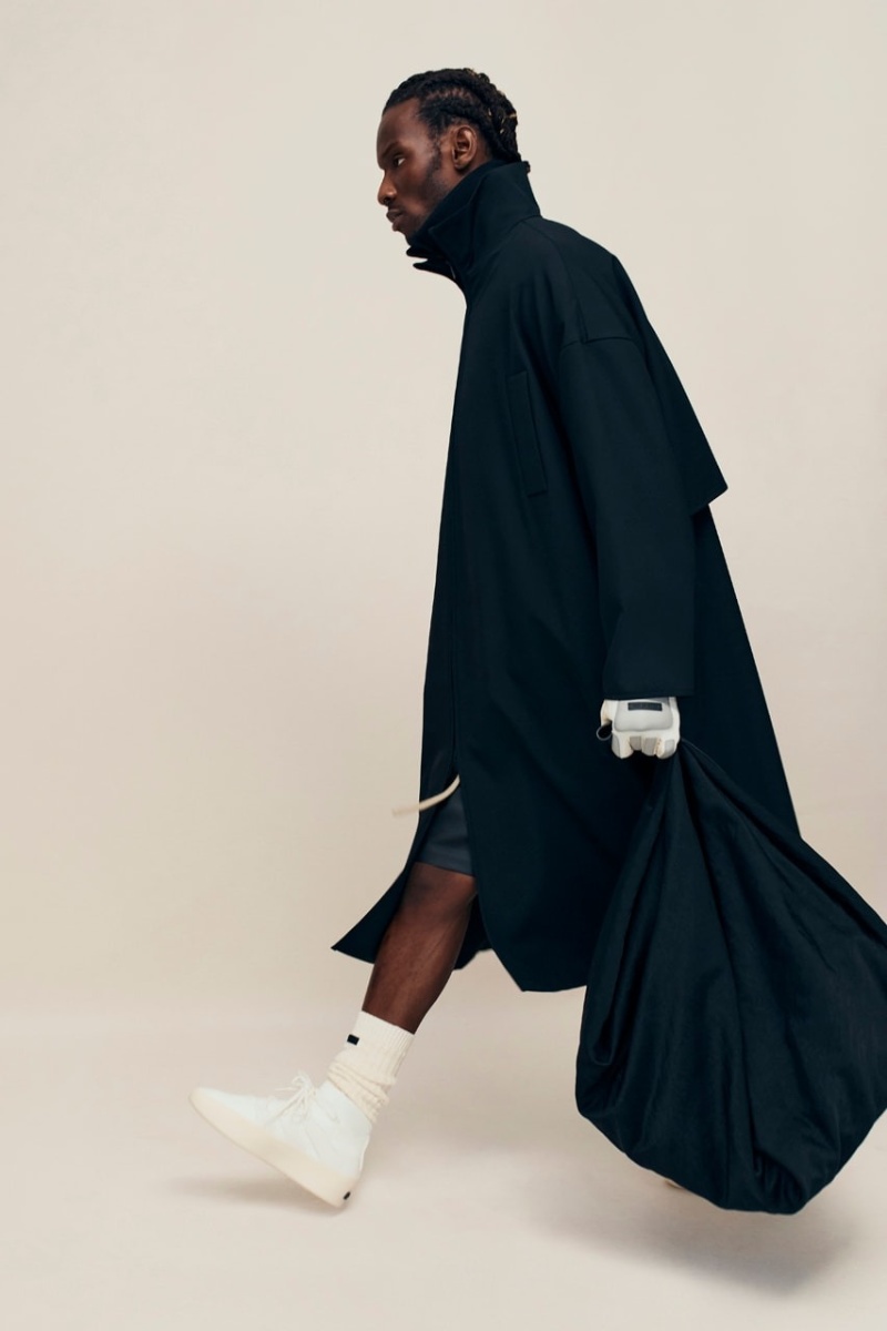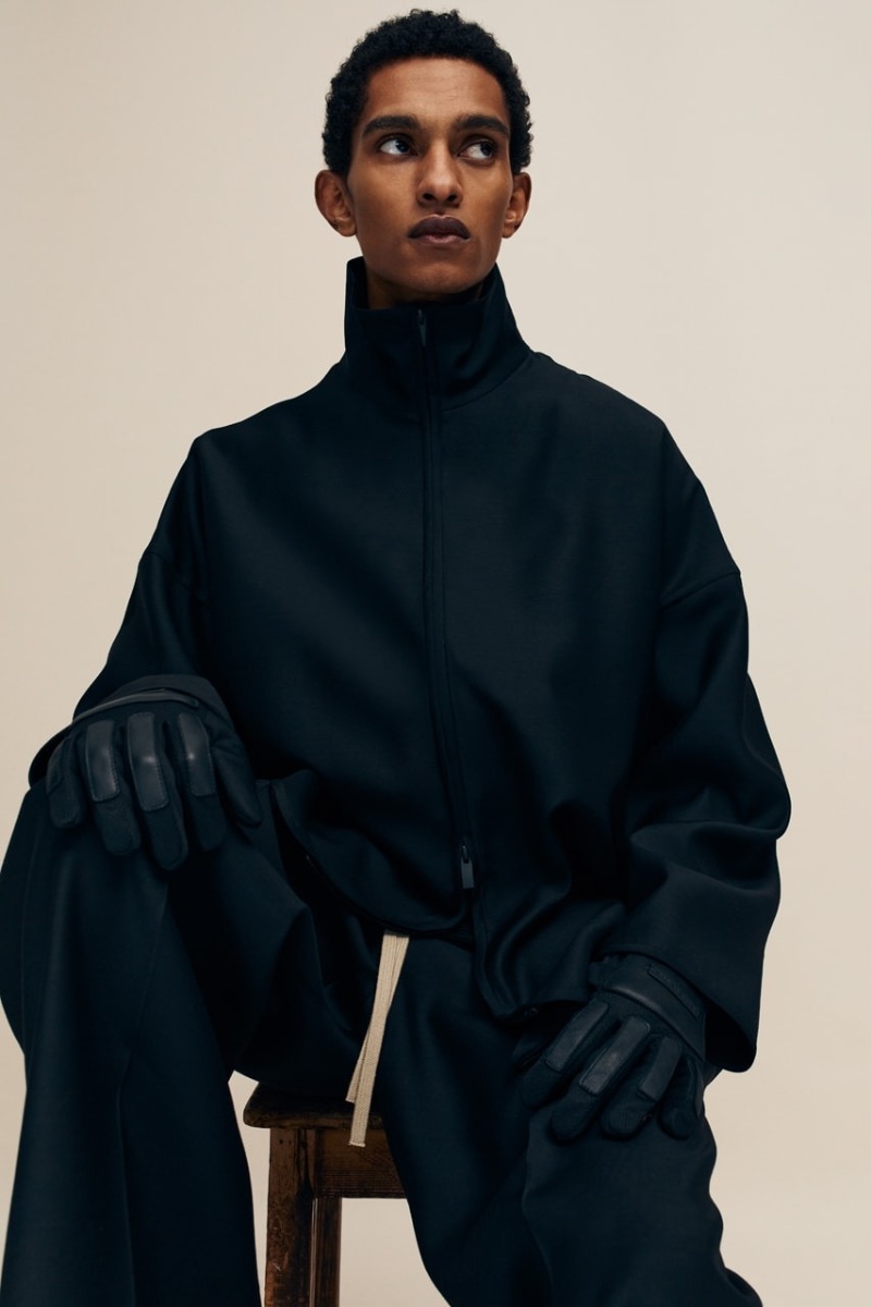 Fear of God Collection 8 presenta también nuevas reinterpretaciones de los abrigos de pelo de toda la vida. Ya estas prendas no son solo para señoras con tocados… son también para amantes del high street. Estas nuevas versiones rescatan la riqueza del material y su distintiva textura y la silueta relajada y atemporal de Lorenzo. En la misma línea, tenemos gabardinas de cuero negro espectacularmente minimalistas y cazadoras biker sobredimensionadas. La base para estos nuevos looks son prendas características de la firma, con una nueva silueta. Aquí destacamos conjuntos de inspiración deportiva de corte oversize y cuellos altos, chándal de algodón y looks vaqueros de lavado claro. Como otros esenciales, tenemos sudaderas y cuellos altos renovados.