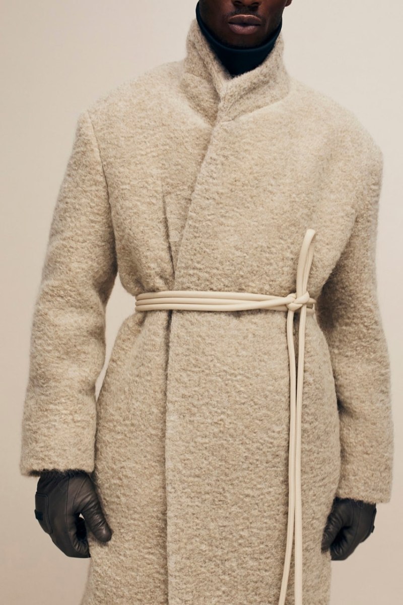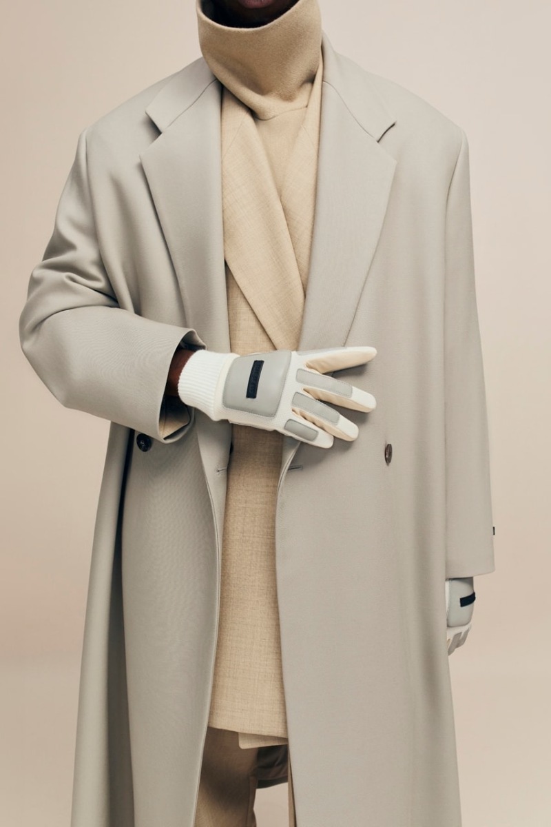 Otro de los puntos más novedosos de Fear of God Collection 8 son los accesorios. Siguiendo ese estilo neo western, tenemos cinturones de cordón en piel para acentuar la cintura en abrigos oversize como pieza clave. Complementando esto, la colección también propone guantes acolchados de inspiración motorista en piel, tanto en colores neutrales como puntos de color (como vimos en el desfile: verde y azul saturado). Y, nuestra nueva obsesión: bolsos de piel de diseño simple con proporciones dramáticas.